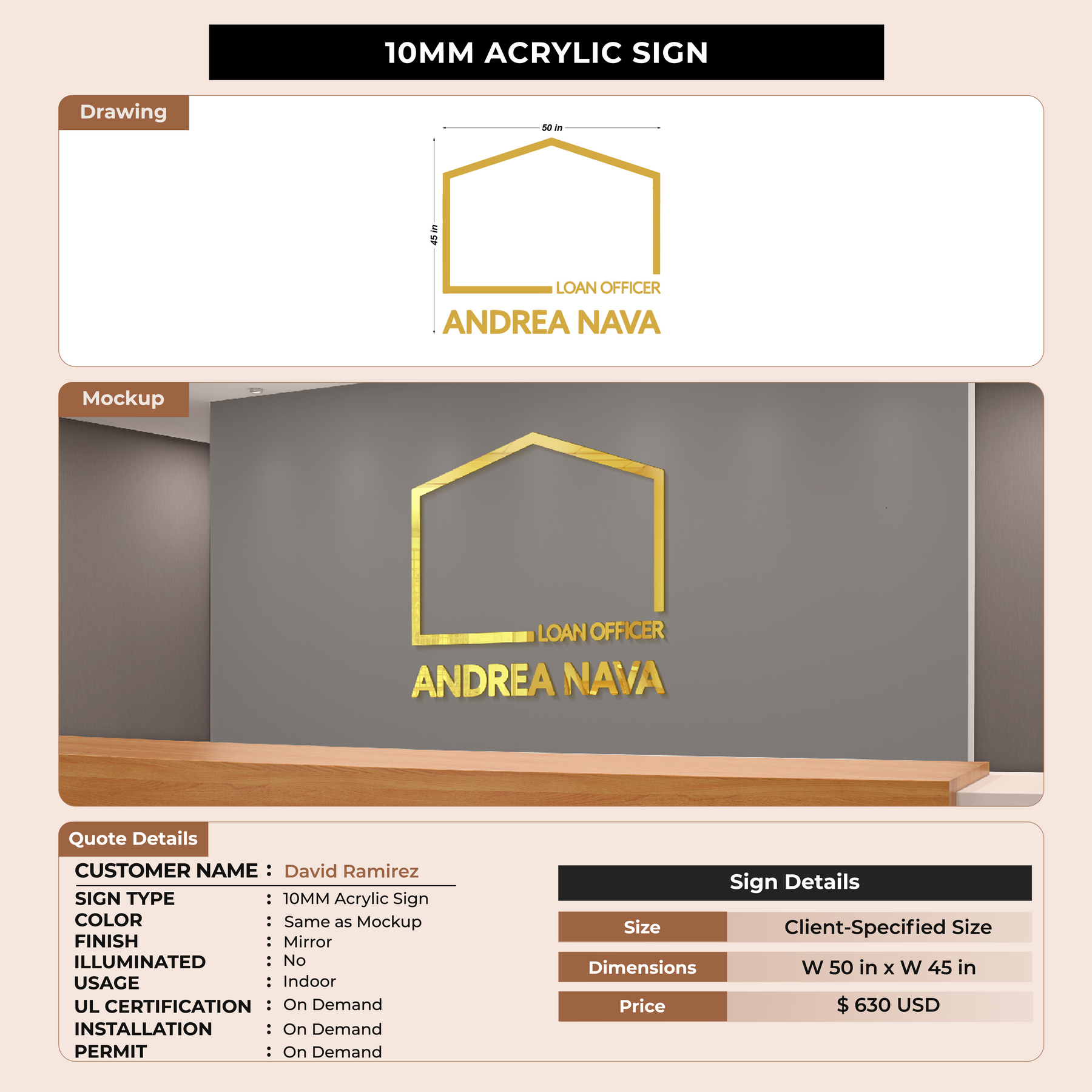 10MM Acrylic Sign For David Ramirez
