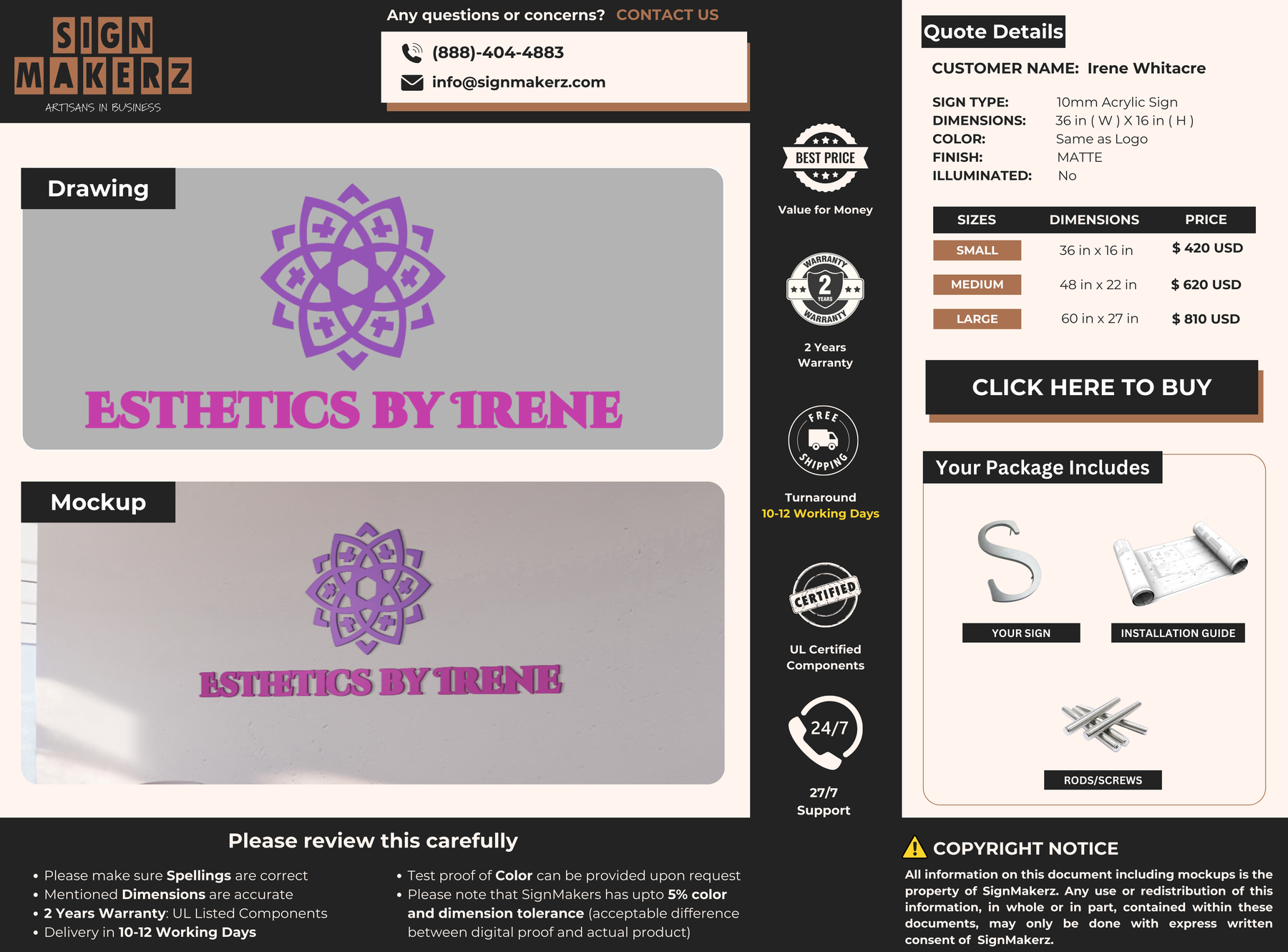 Crafted with premium material, this signage will elevate your business image, precisely mirroring your logo for a professional look.