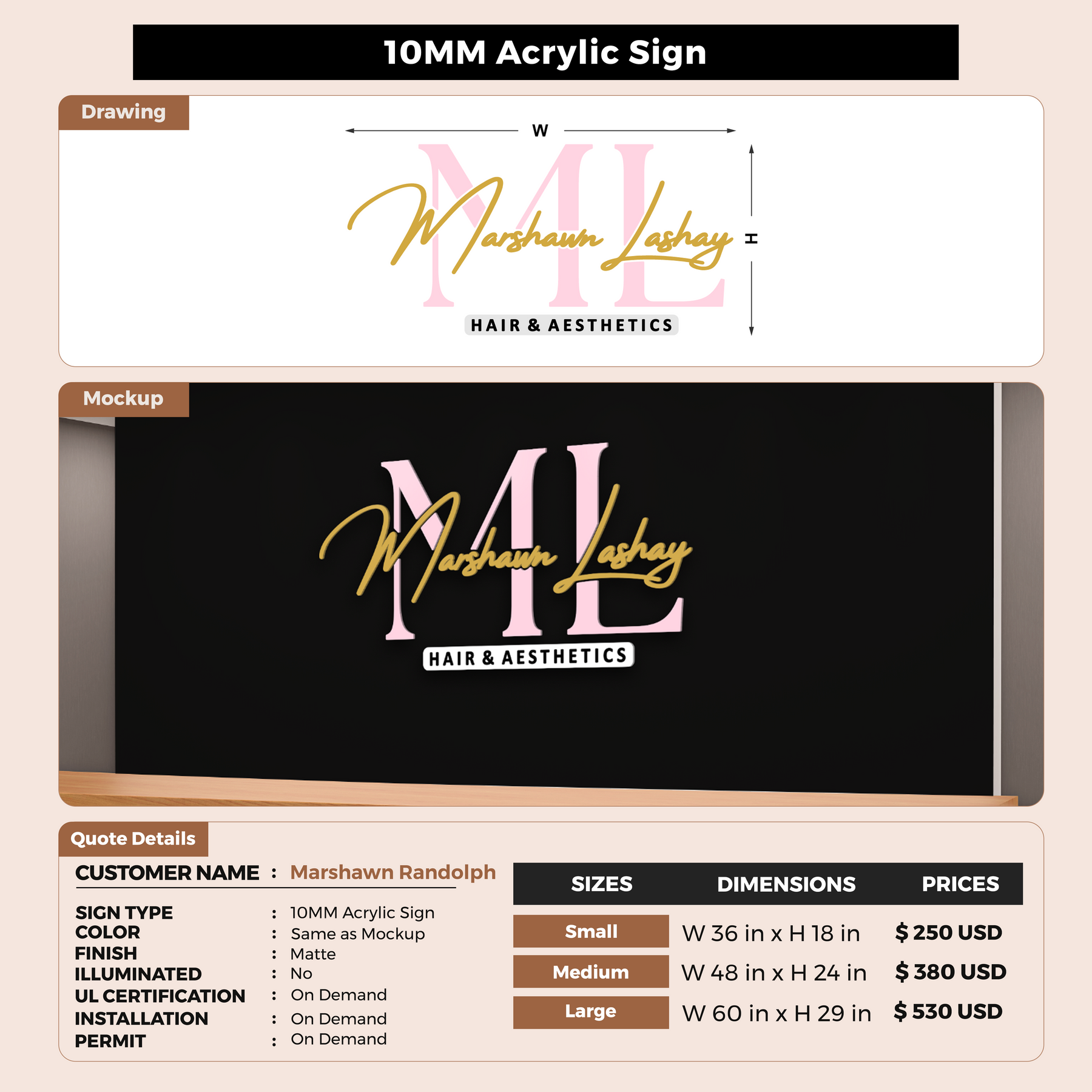 10MM Acrylic Sign For Marshawn Randolph
