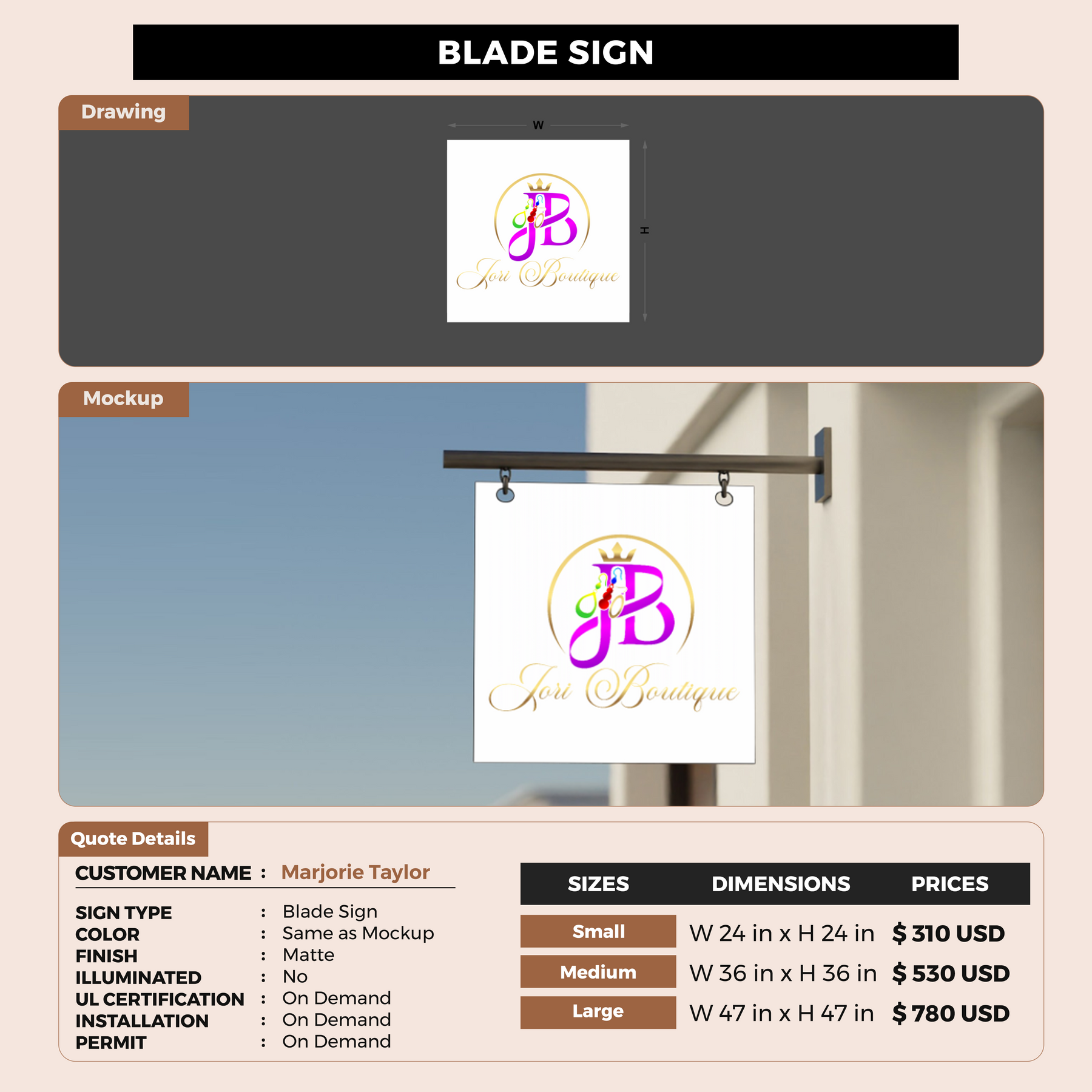 2D Blade Sign for Marjorie Taylor