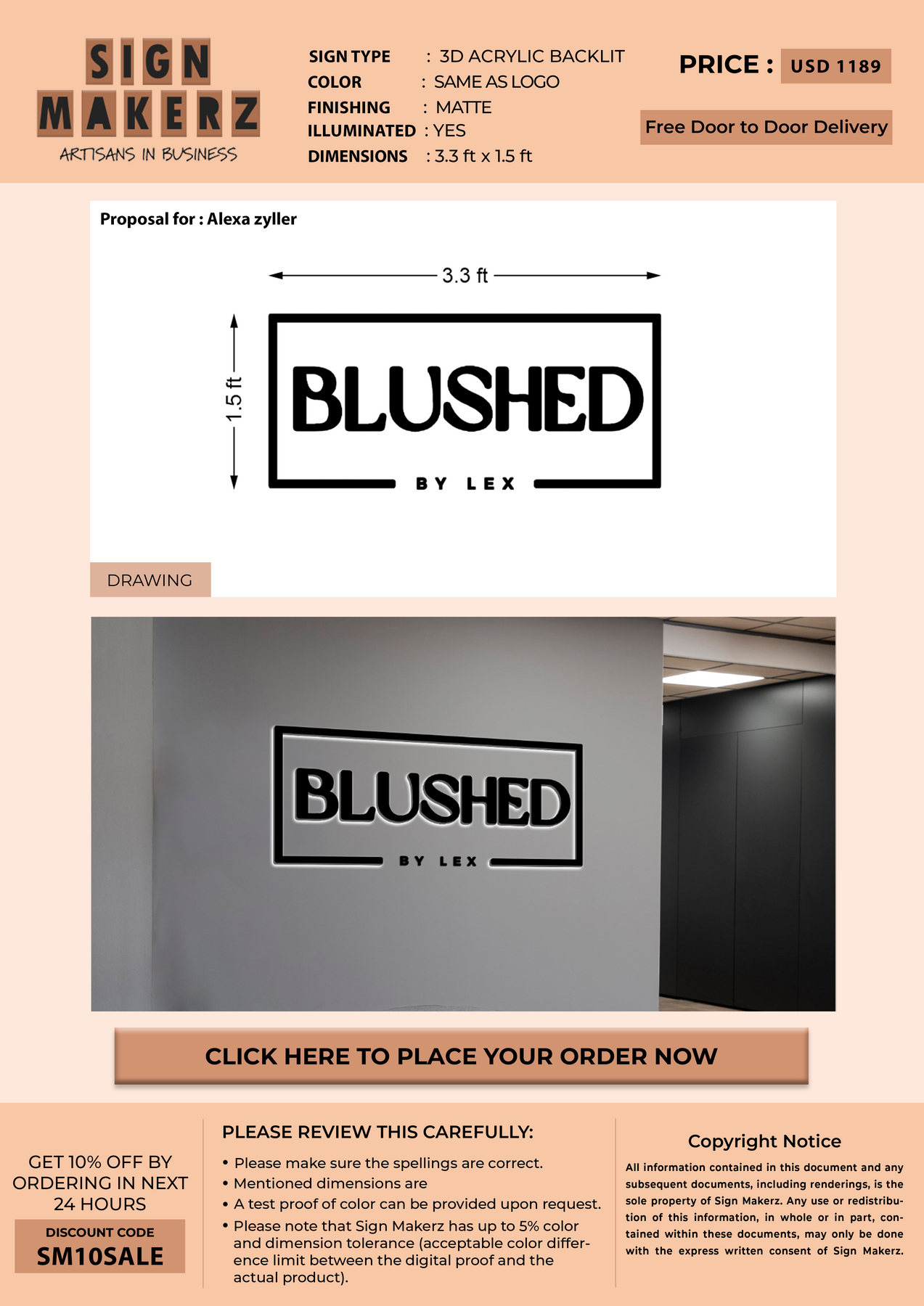 3D Acrylic Backlit sign for Alexa zyller
