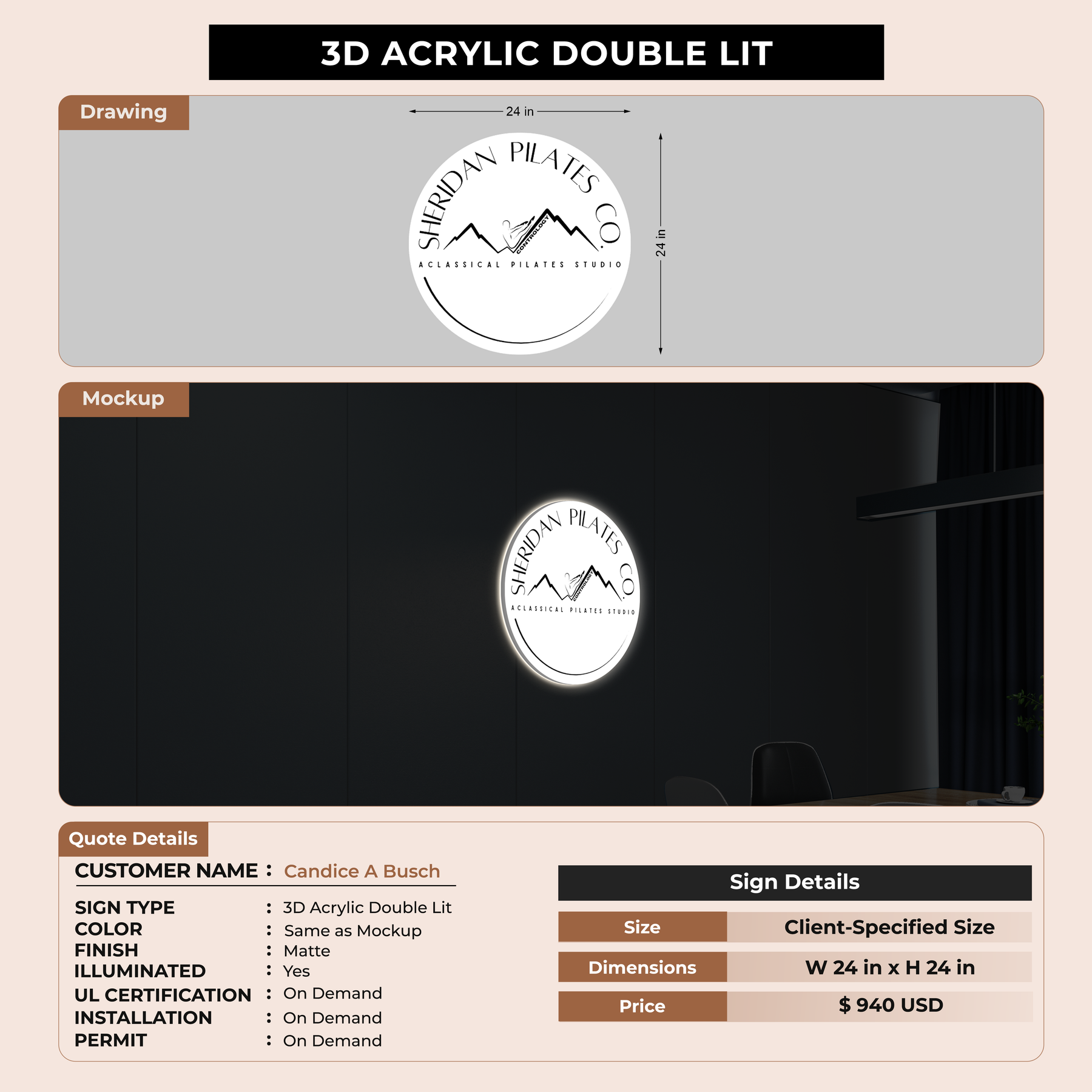 3D Acrylic Double Lit For Candice A Busch