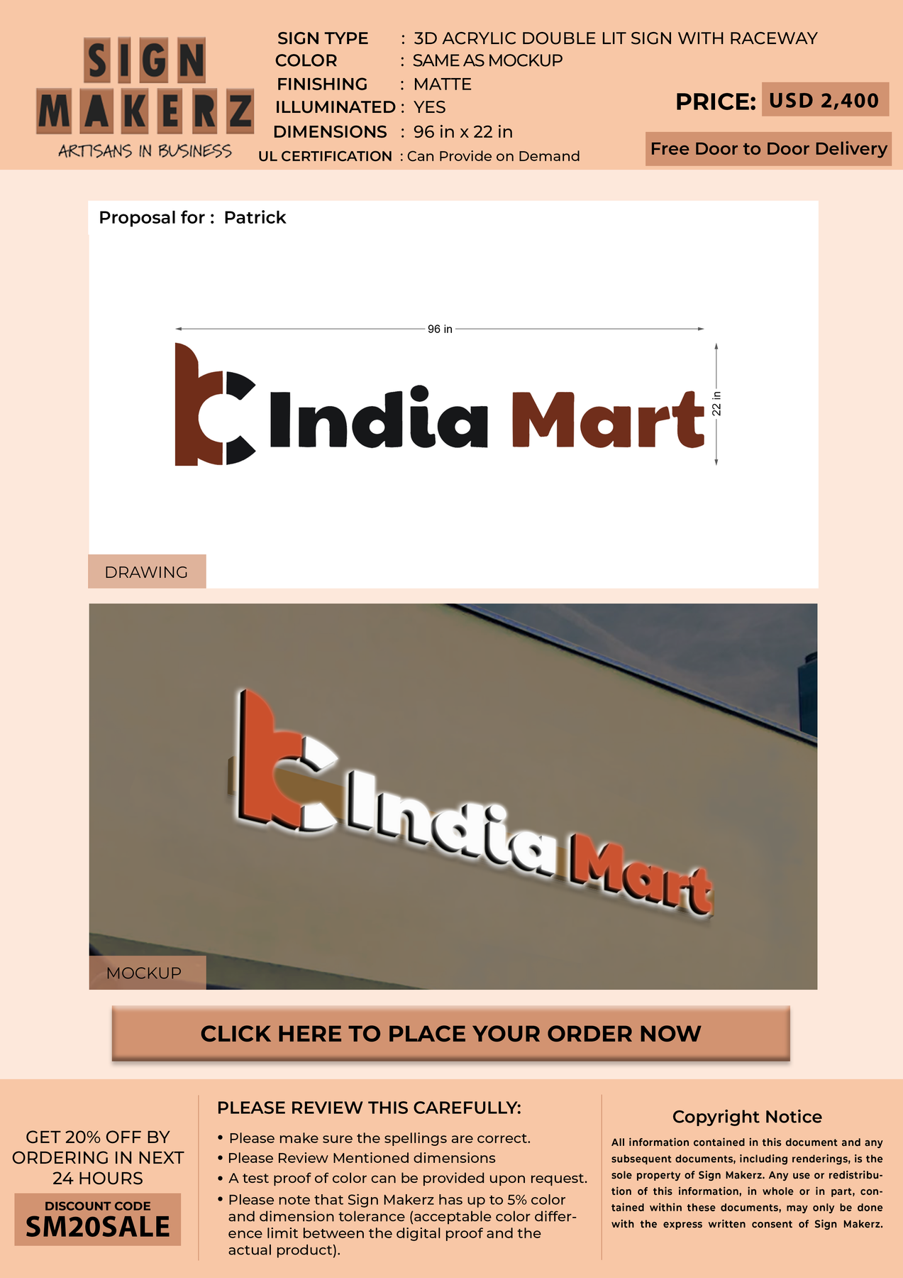 3D Acrylic Double-Lit Sign with Raceway for Patrick