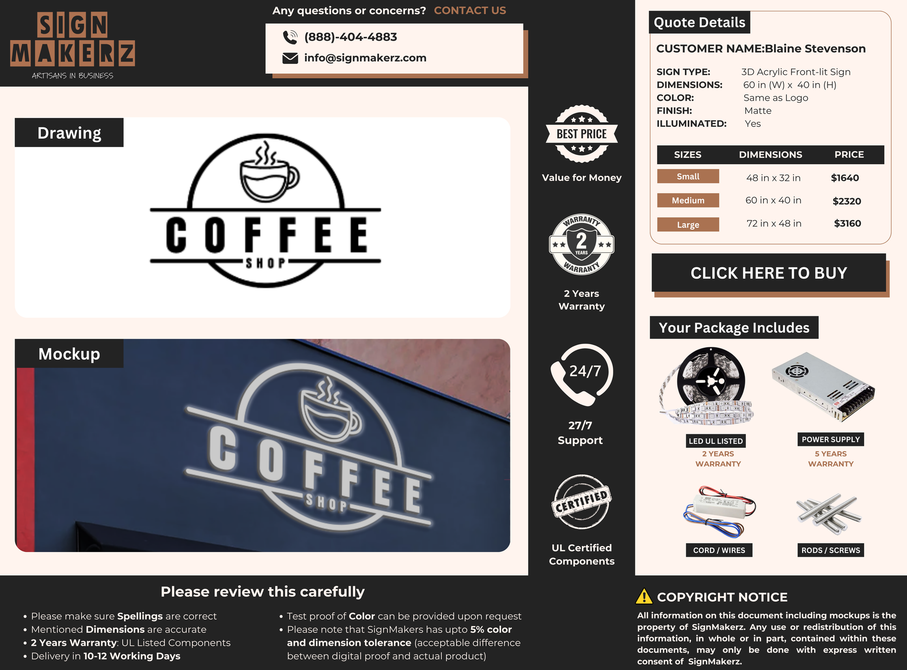 Enhance your business presence with our expertly crafted signage, made from top-quality material, to ensure longevity and durability. Fully customizable to reflect your unique brand identity, our signage offers a professional and polished appearance. Easy to install and low maintenance, it’s the perfect addition to any business setting. Trust us to deliver a product that not only meets but exceeds your expectations.