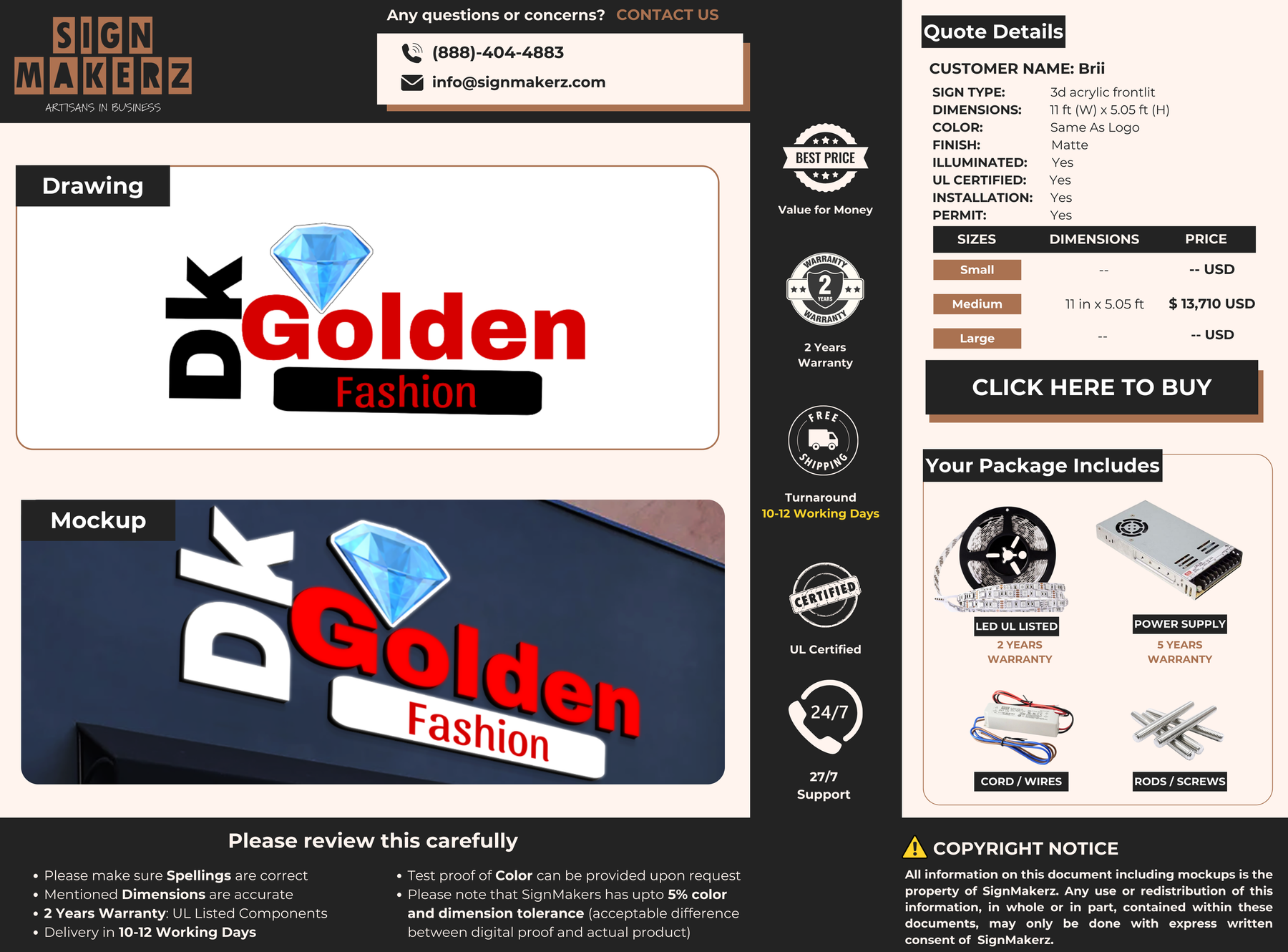INSTALLATION, UL CERTIFICATION AND PERMIT are added in the total Quote