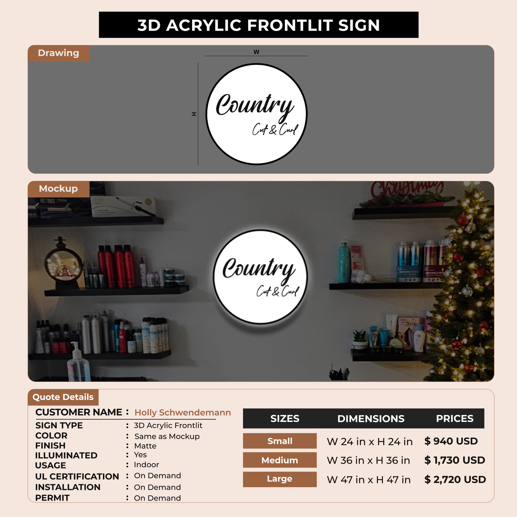 3D Acrylic Frontlit for Holly Schwendemann