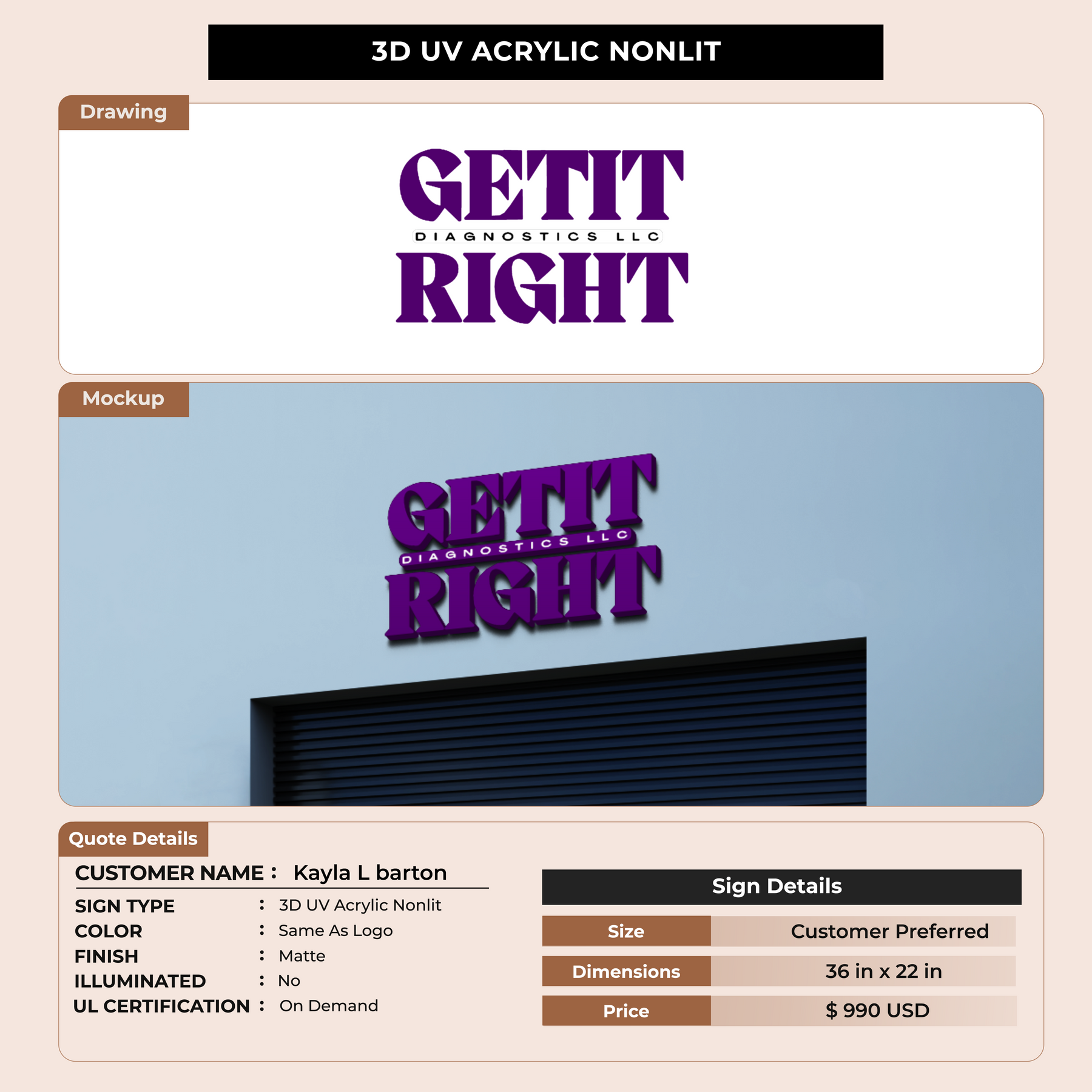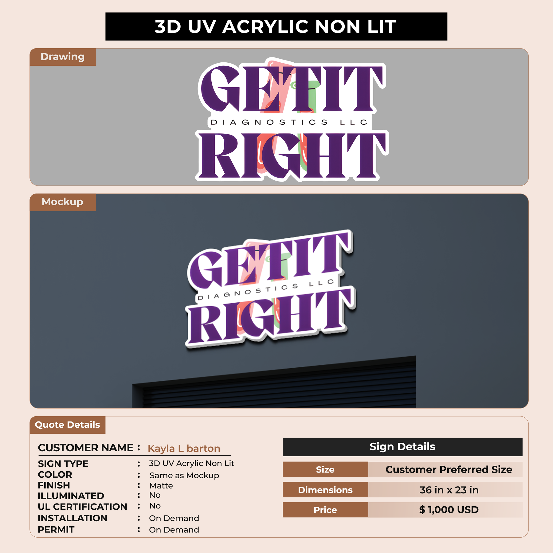 Enhance your business presence with our expertly crafted signage, made from top-quality material, to ensure longevity and durability. Fully customizable to reflect your unique brand identity, our signage offers a professional and polished appearance. Easy to install and low maintenance, it’s the perfect addition to any business setting. Trust us to deliver a product that not only meets but exceeds your expectations.