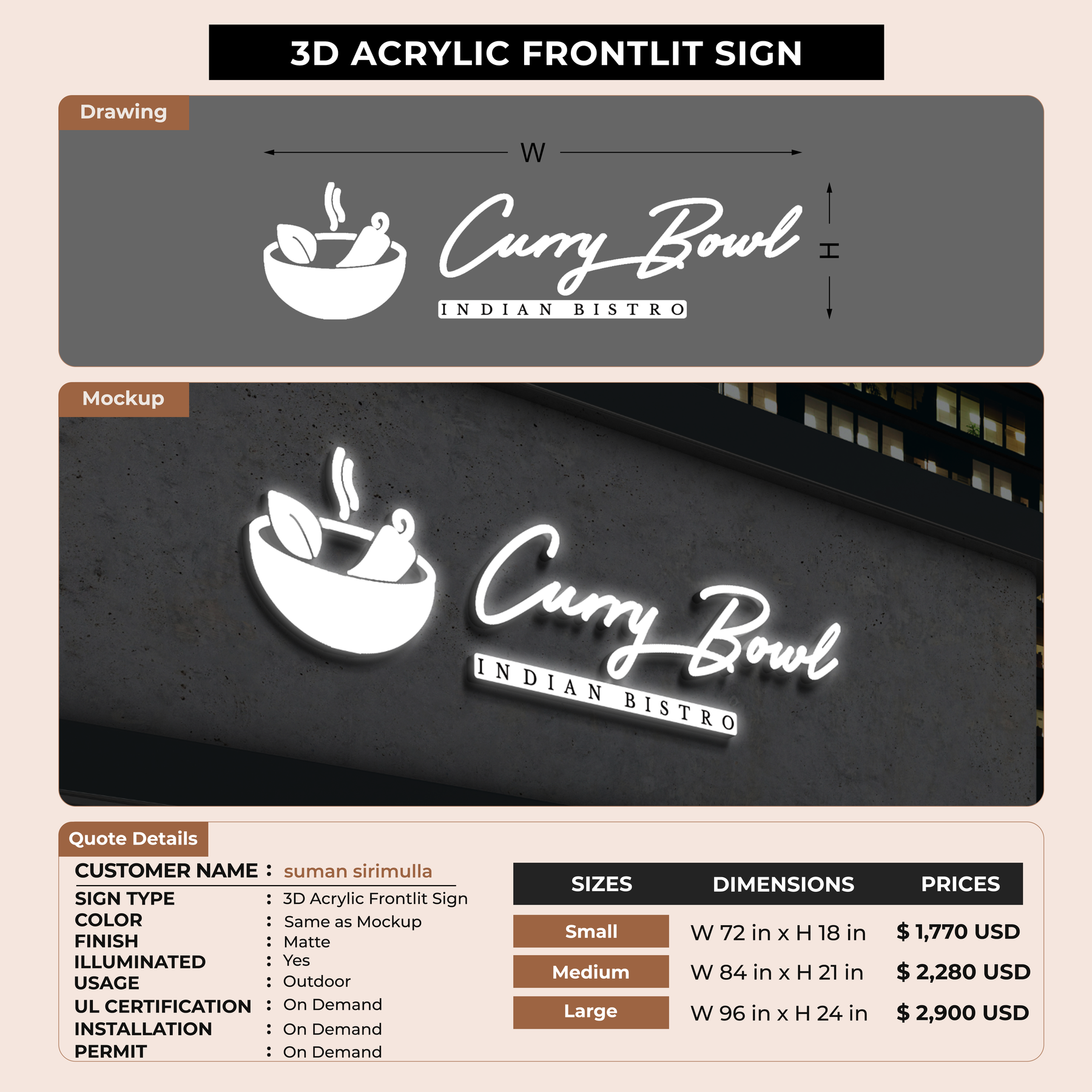 3D Acrylic Frontlit for suman sirimulla