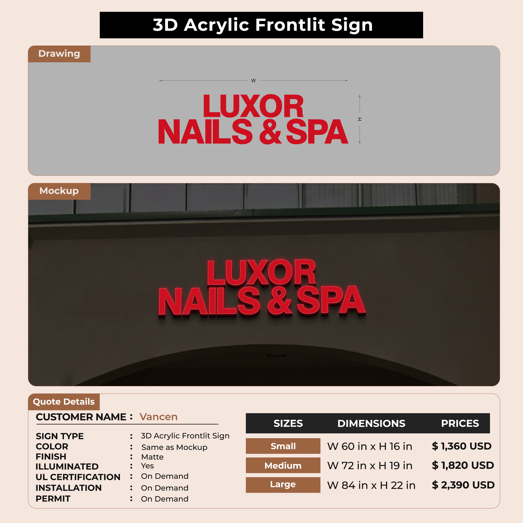 Crafted with premium material, this signage will elevate your business image, precisely mirroring your logo for a professional look.