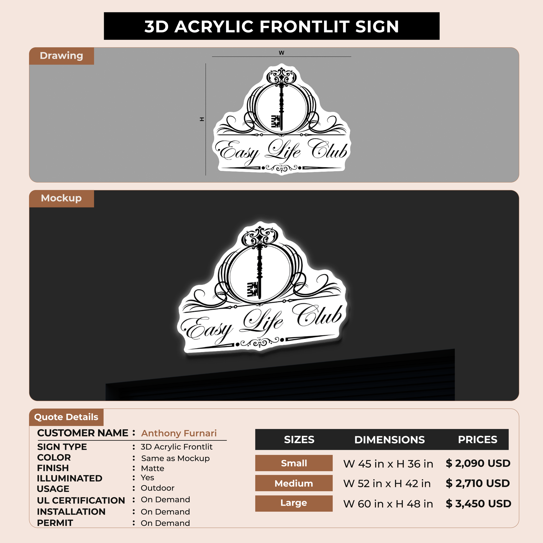 3D Acrylic Frontlit Sign for Anthony Furnari