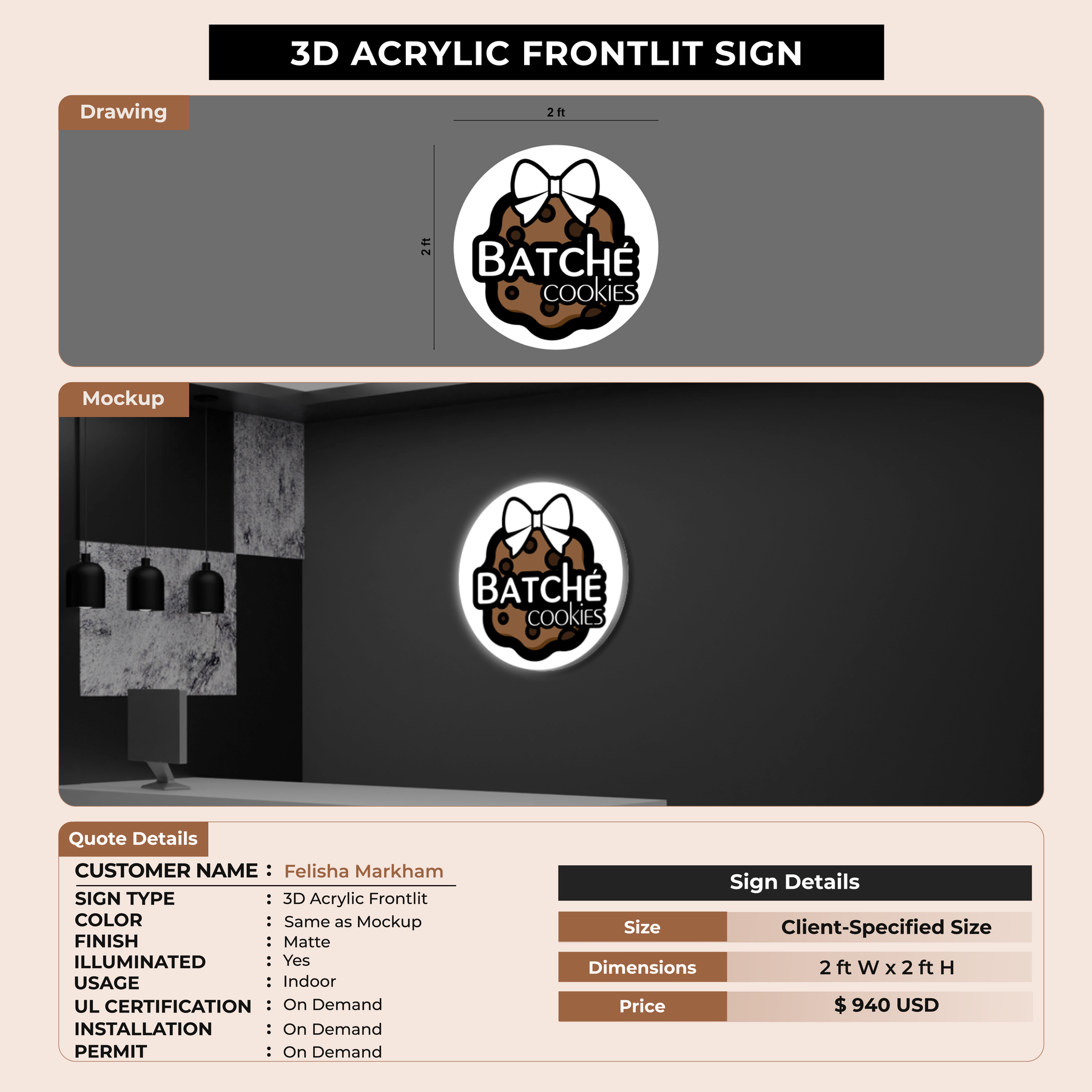3D Acrylic Frontlit Sign for Felisha Markham
