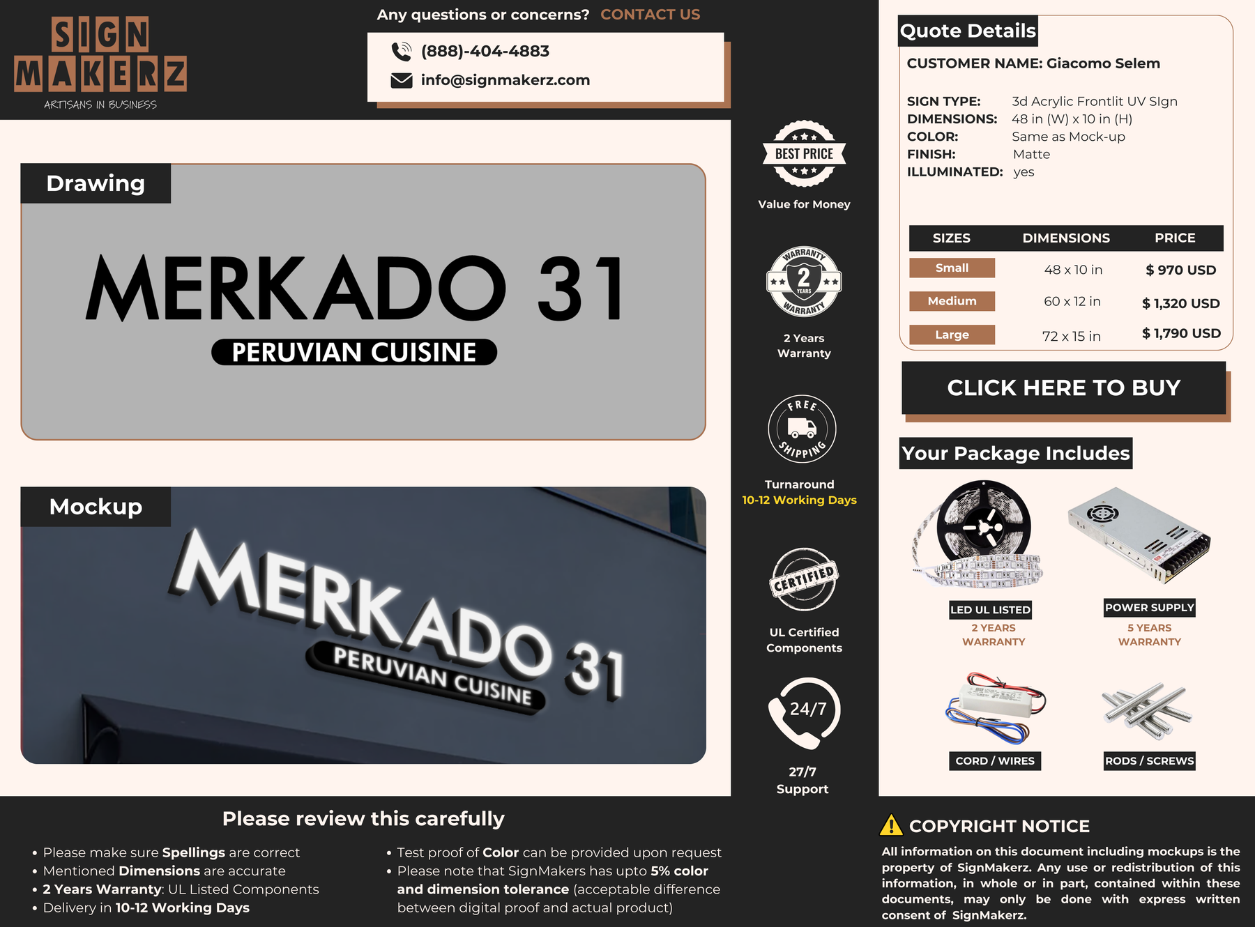 3D Acrylic Frontlit Sign for Giacomo Selem