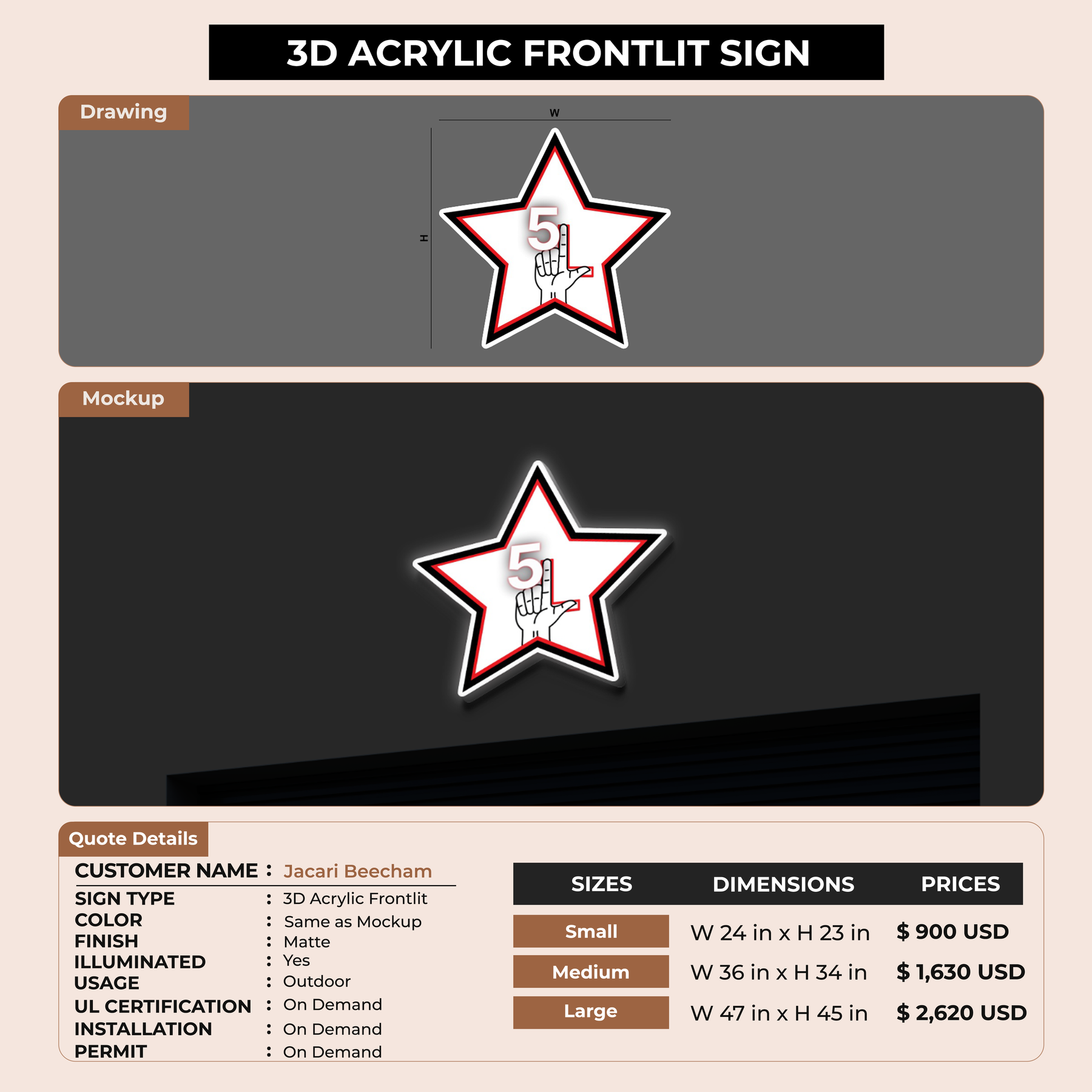 3D Acrylic frontlit sign for Jacari Beecham