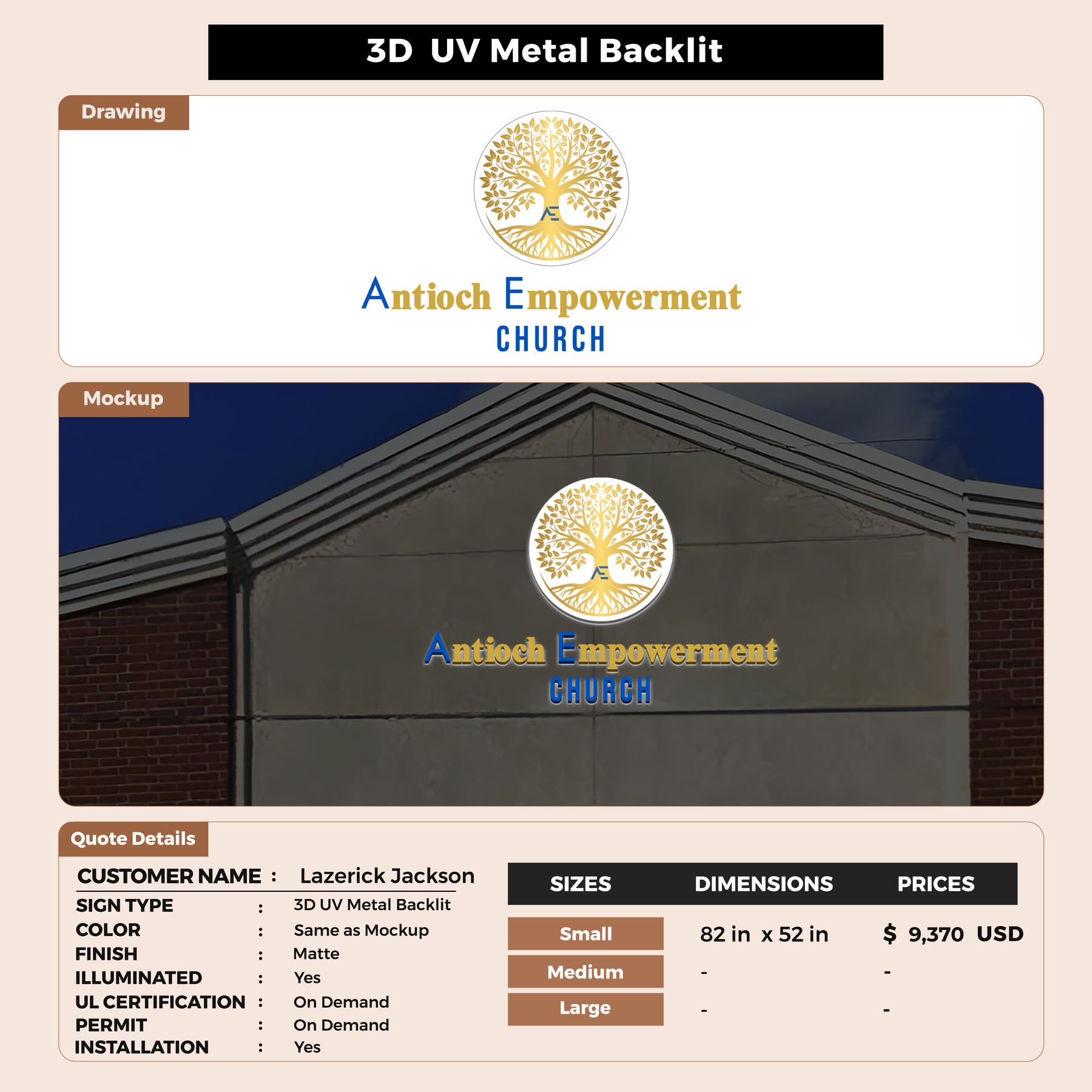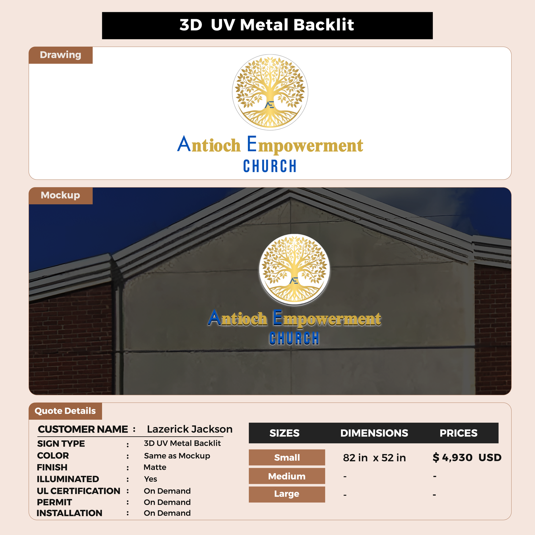 3D UV Metal Back-lit Sign For Lazerick Jackson