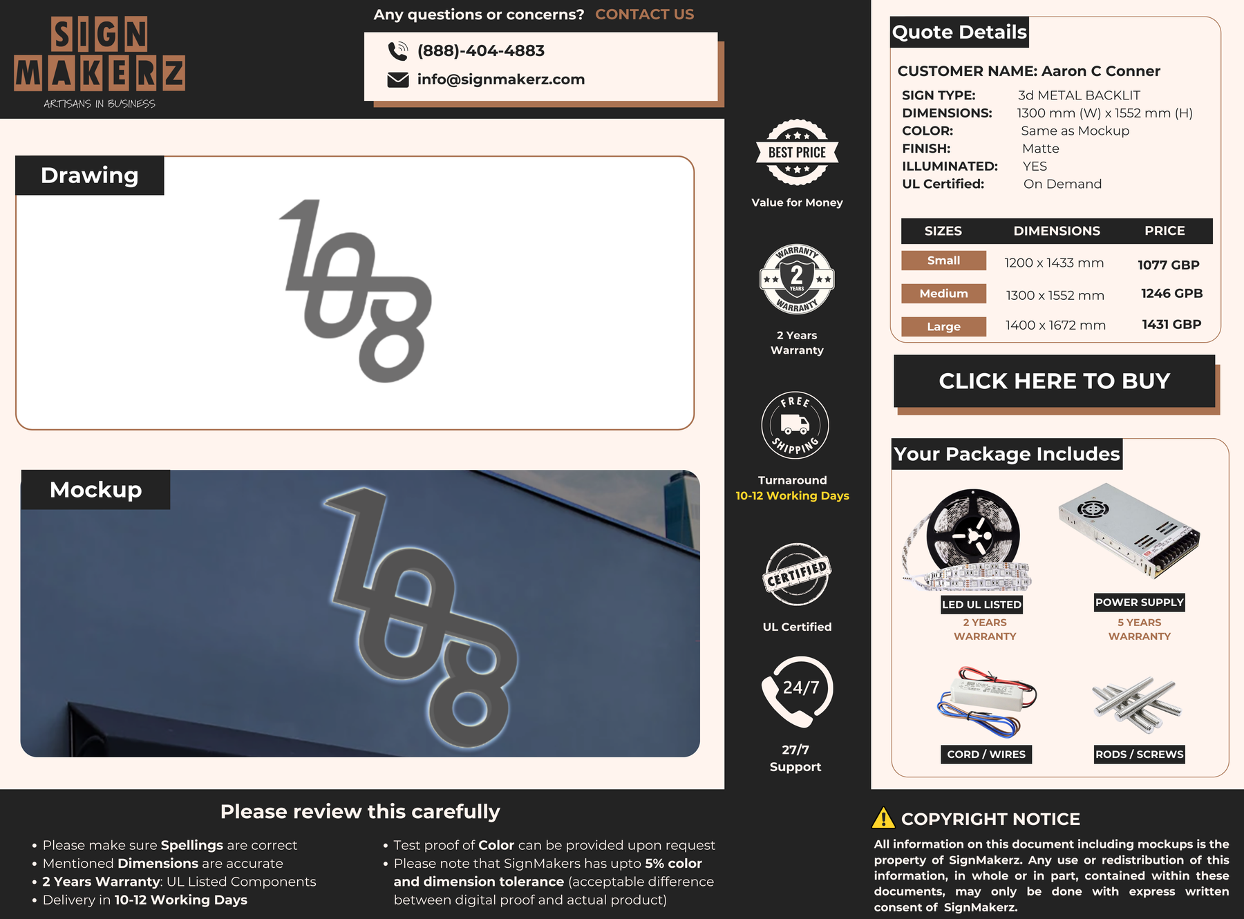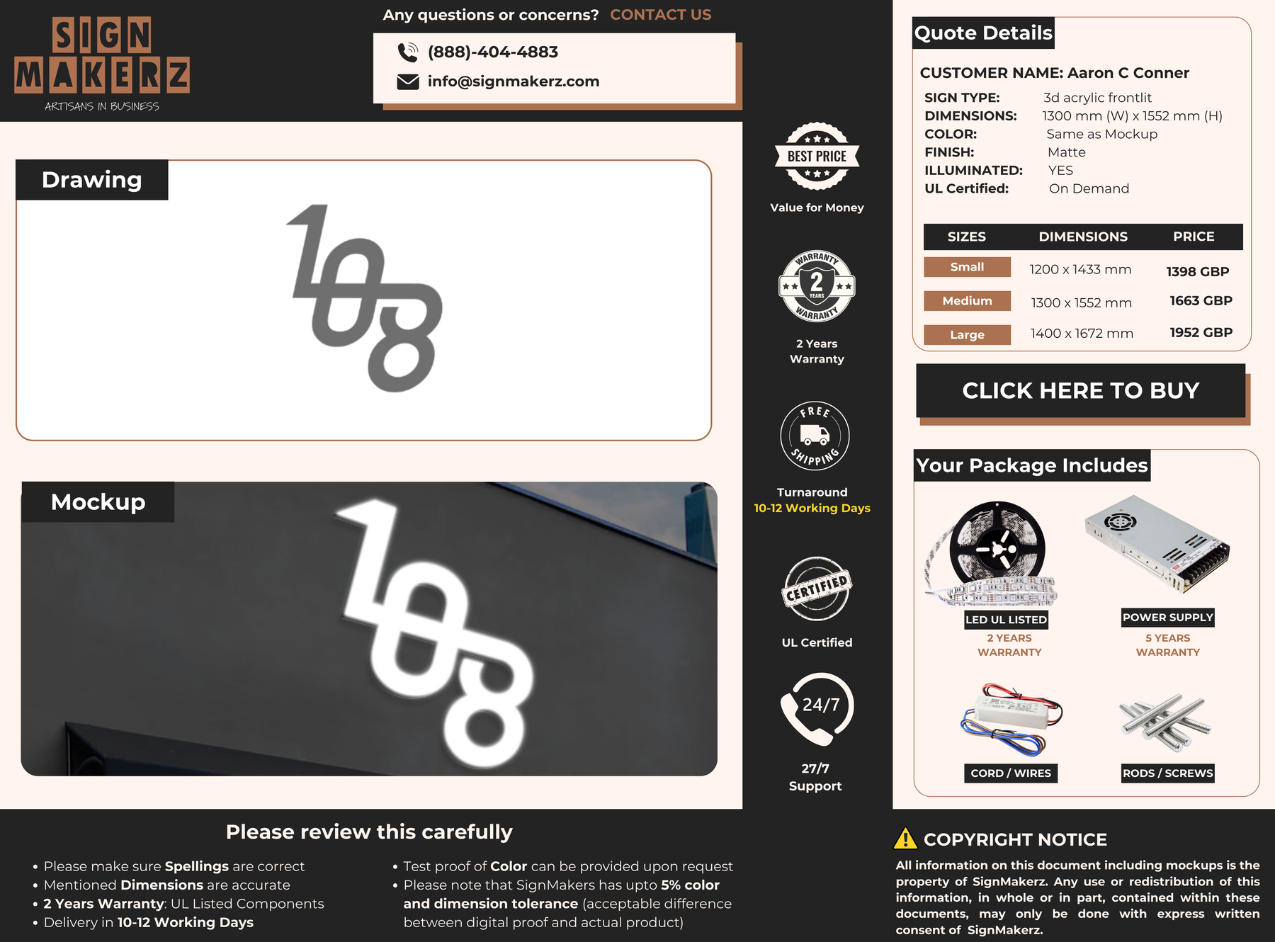 Crafted with premium material, this signage will elevate your business image, precisely mirroring your logo for a professional look.