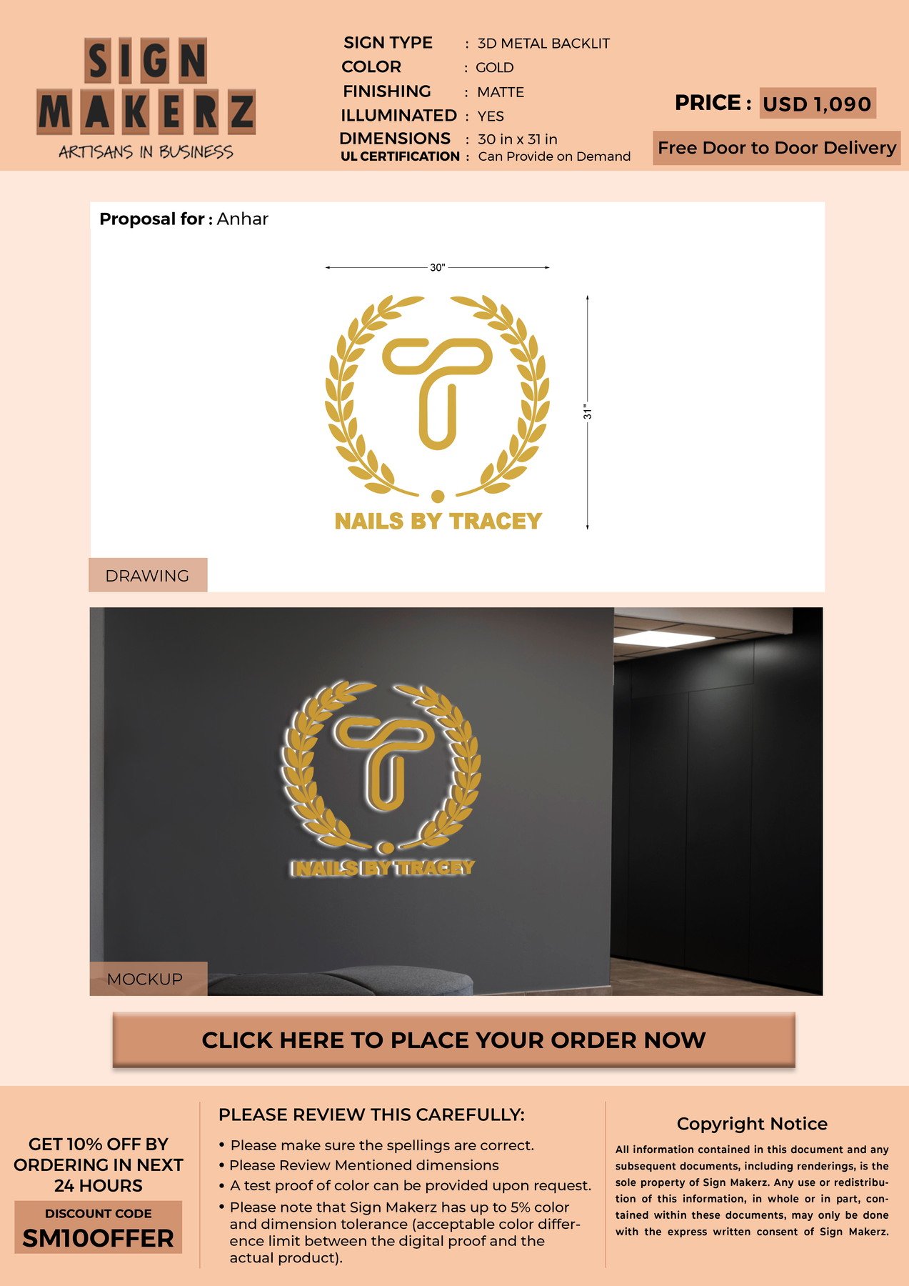 Crafted with premium material, this signage will elevate your business image, precisely mirroring your logo for a professional look.