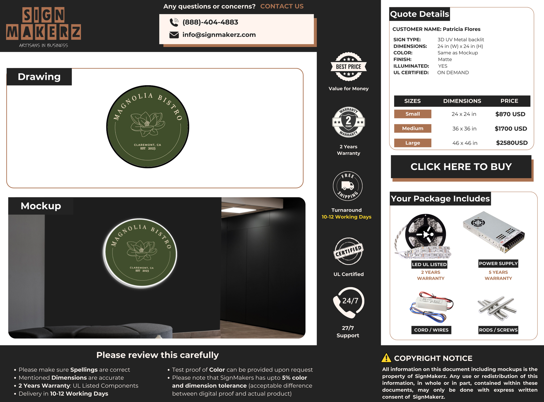 Crafted with premium material, this signage will elevate your business image, precisely mirroring your logo for a professional look.