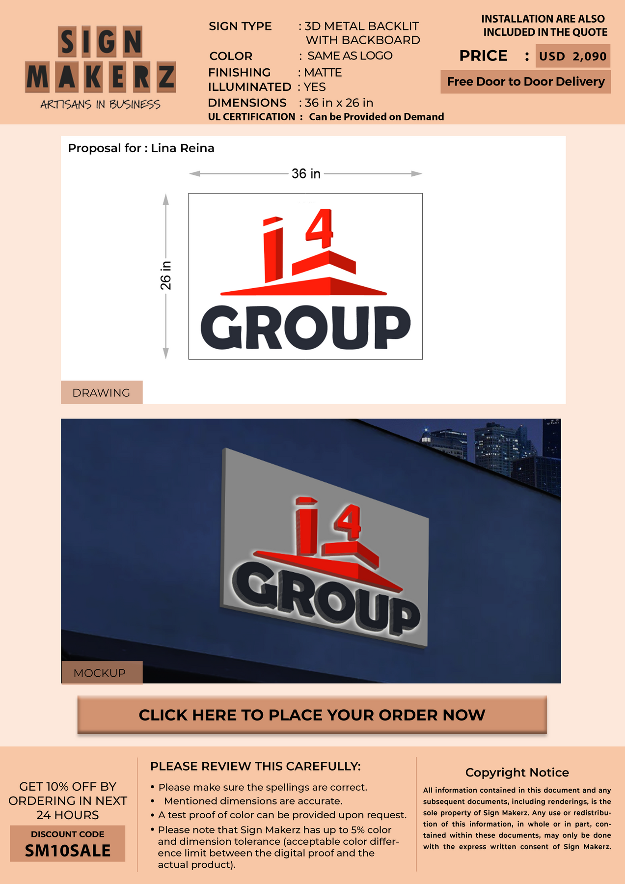 3D Metal Backlit Sign With Backboard For Lina Reina