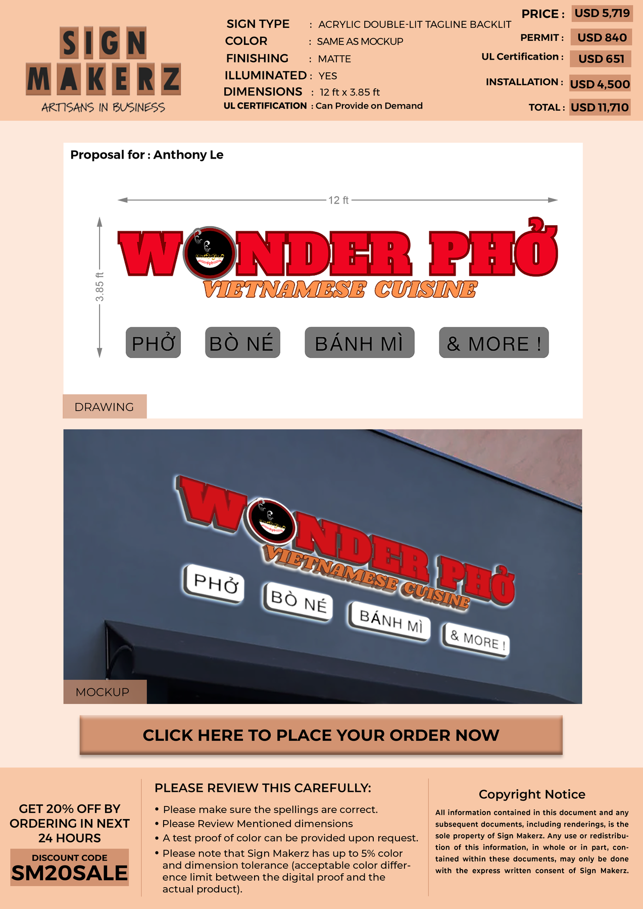 3D UV Acrylic Double-Lit Sign for Anthony Le