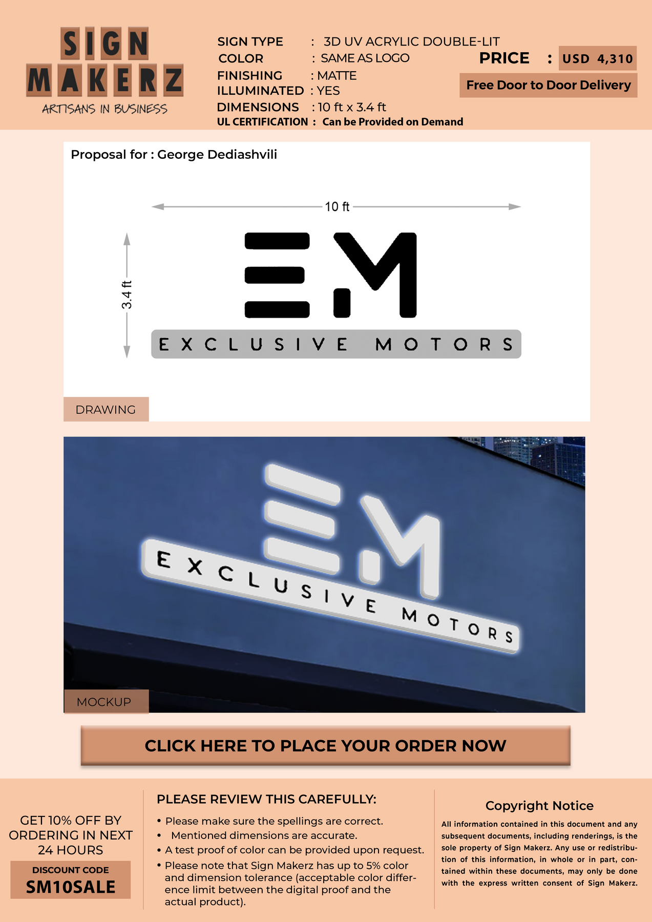 3D UV Acrylic Double-Lit Sign for George Dediashvili
