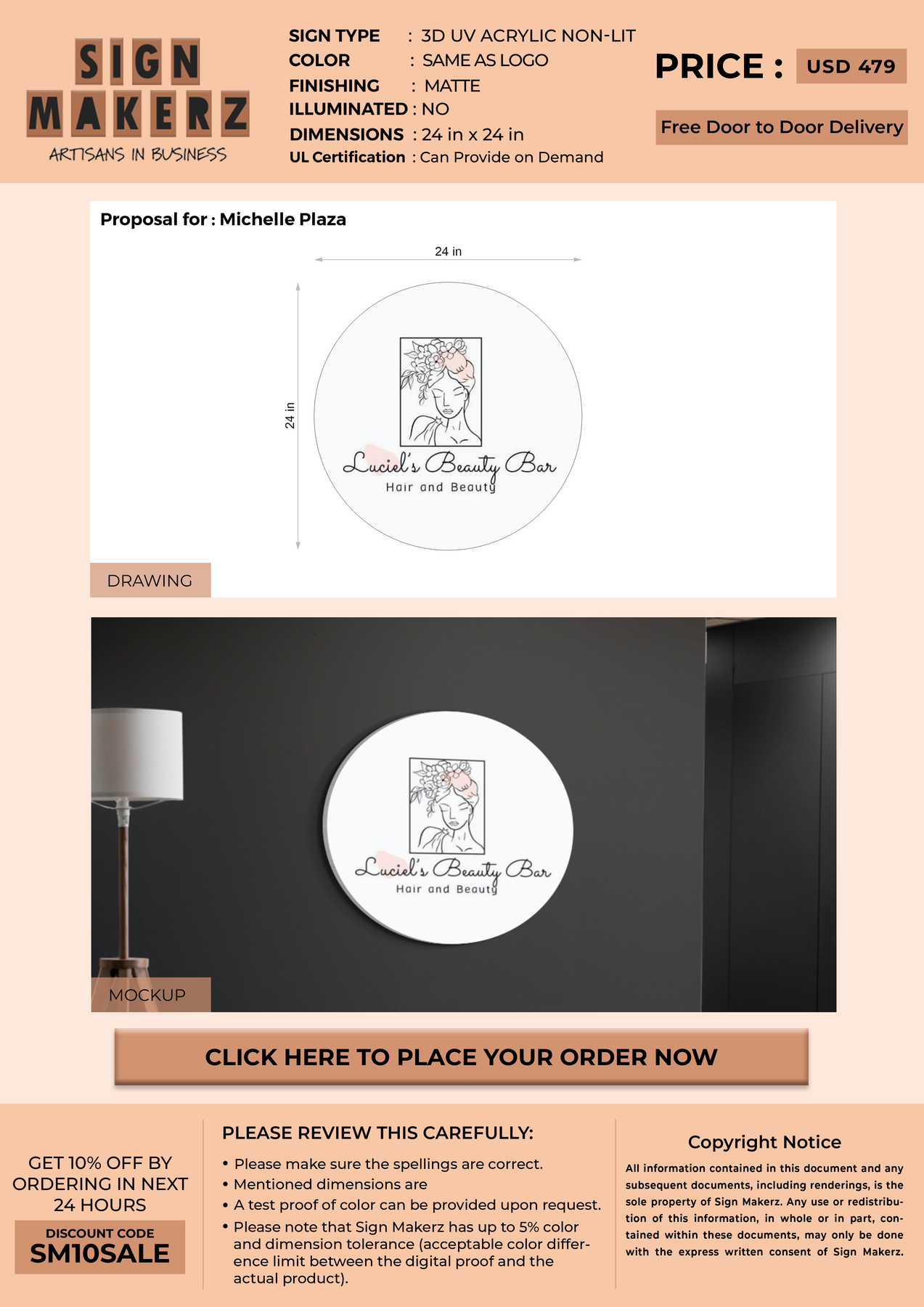 3D UV Acrylic Non-Lit sign for Michelle Plaza