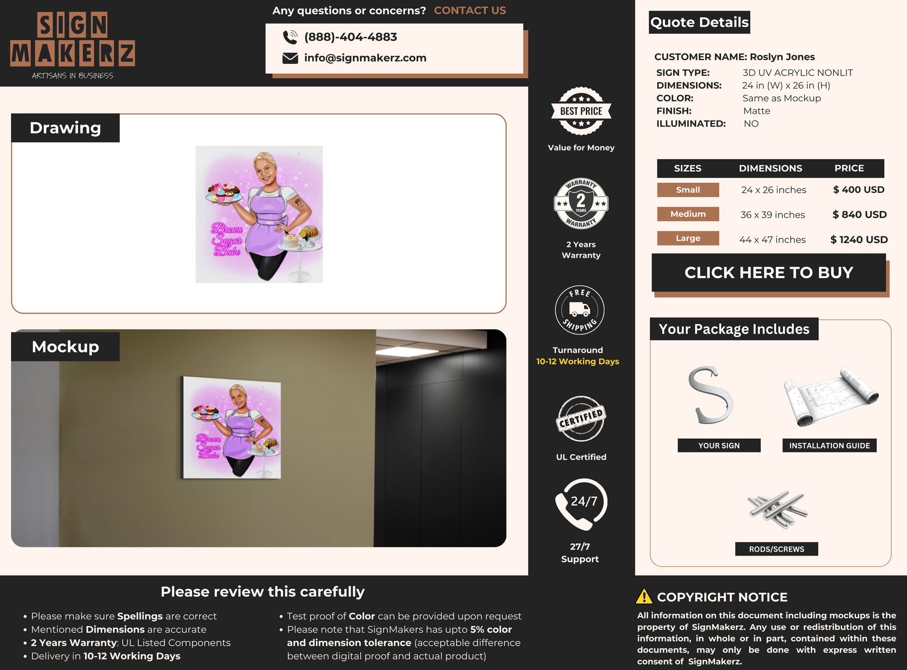 3D UV Acrylic Non-Lit Sign for Roslyn Jones