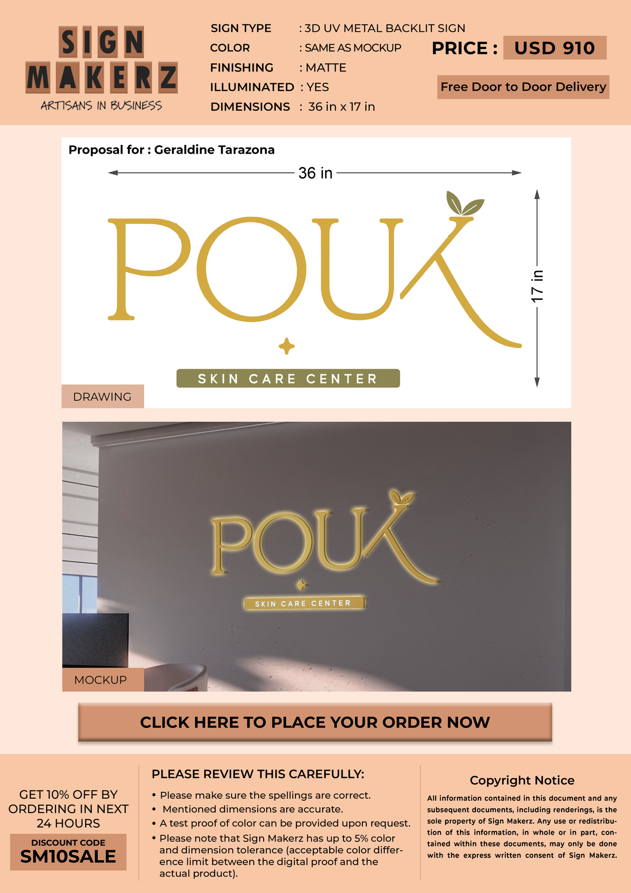 3D UV Metal Backlit Sign For Geraldine Tarazona
