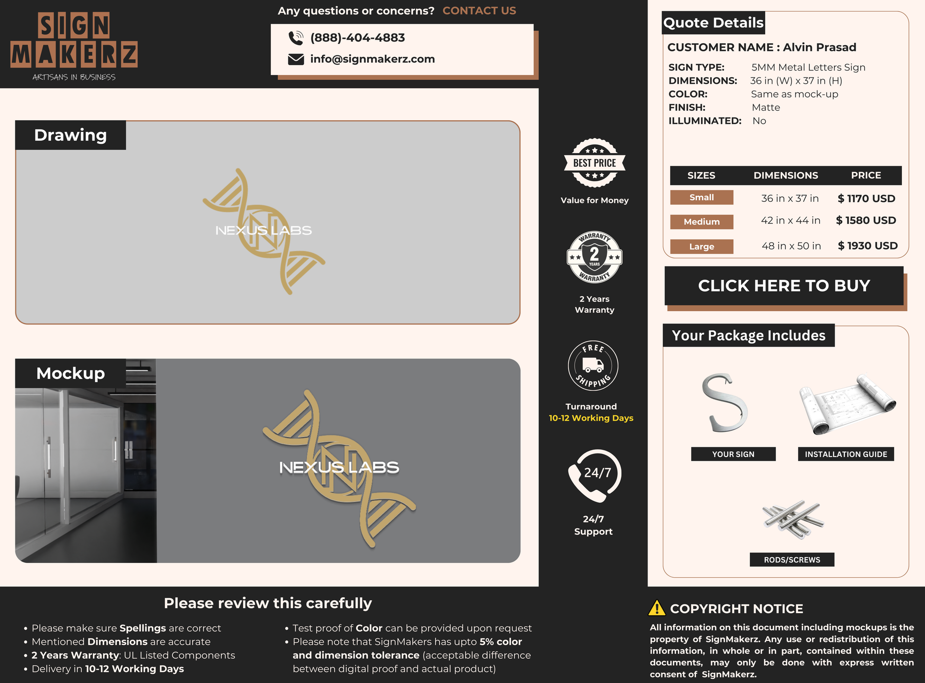 Crafted with premium material, this signage will elevate your business image, precisely mirroring your logo for a professional look.