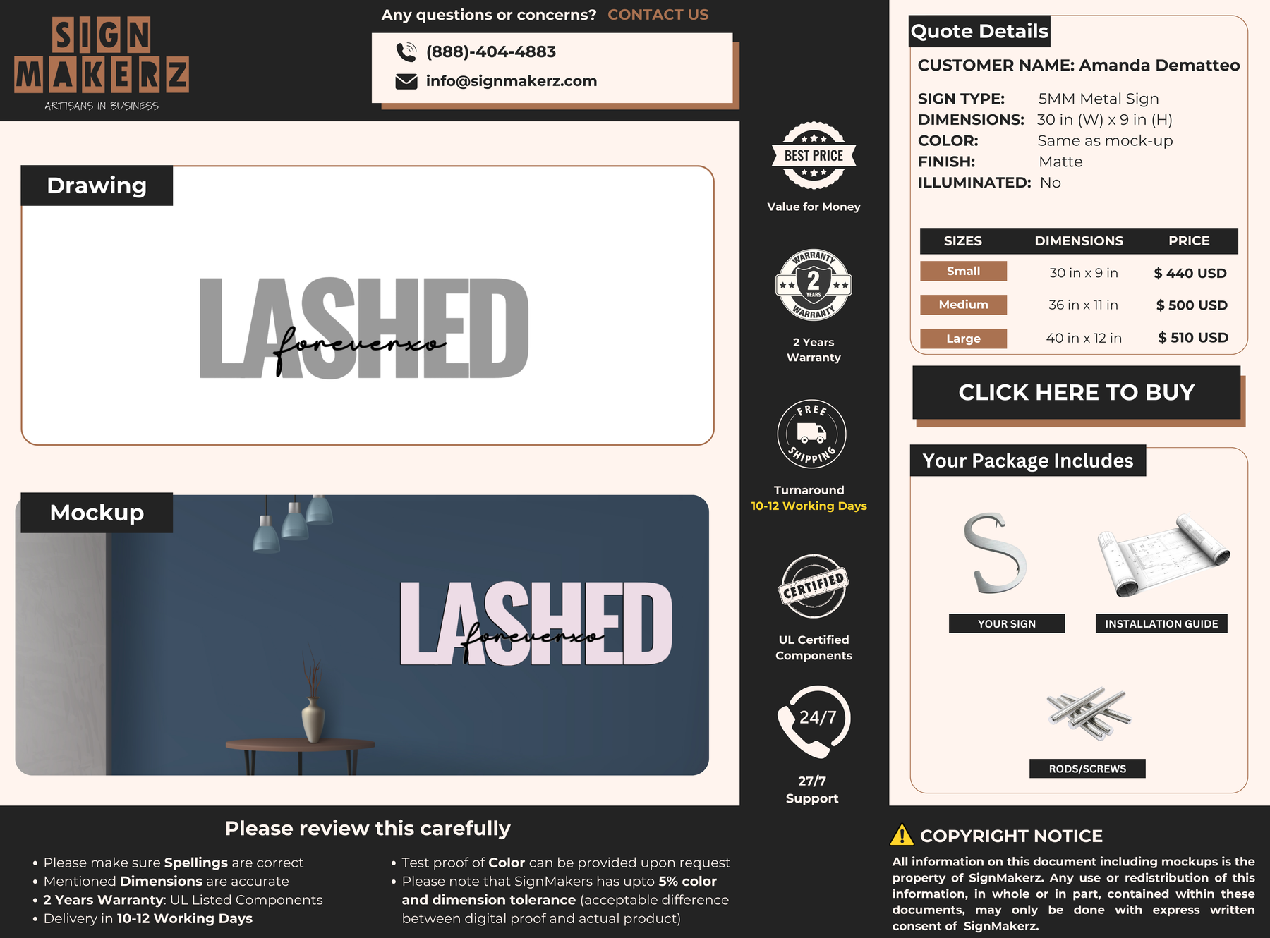 Crafted with premium material, this signage will elevate your business image, precisely mirroring your logo for a professional look.