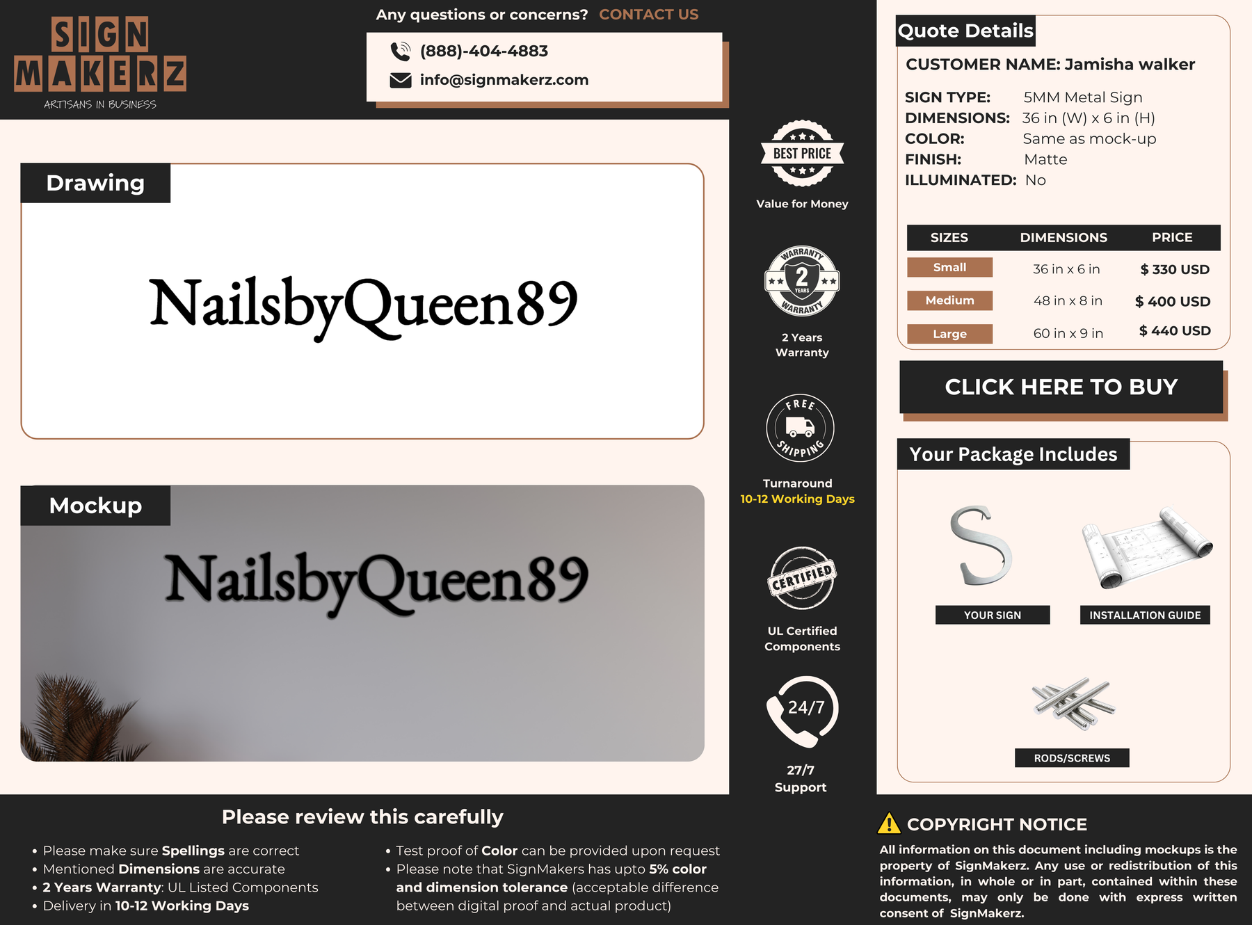 Enhance your business presence with our expertly crafted signage, made from top-quality material, to ensure longevity and durability. Fully customizable to reflect your unique brand identity, our signage offers a professional and polished appearance. Easy to install and low maintenance, it’s the perfect addition to any business setting. Trust us to deliver a product that not only meets but exceeds your expectations.