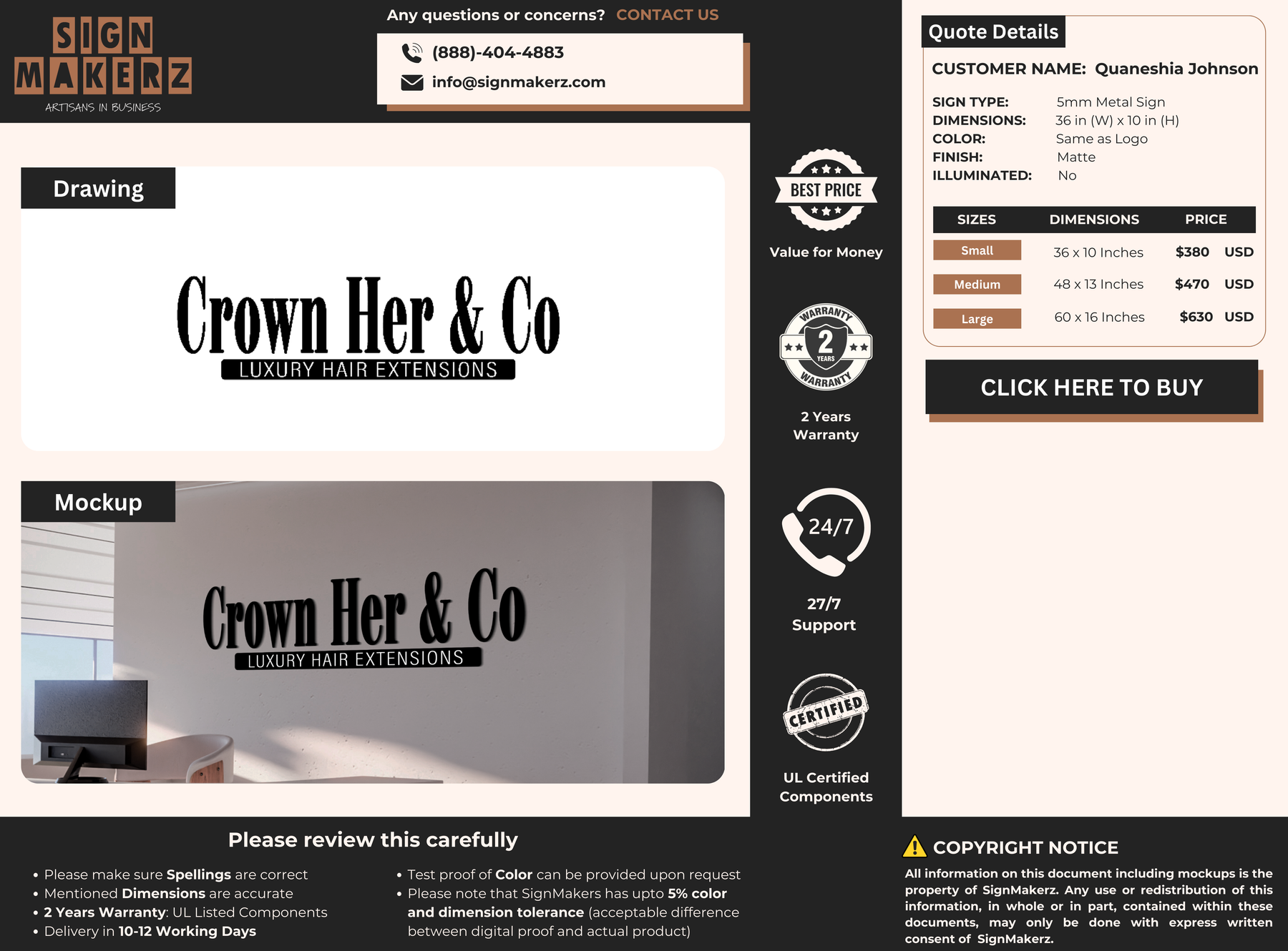 Crafted with premium material, this signage will elevate your business image, precisely mirroring your logo for a professional look.