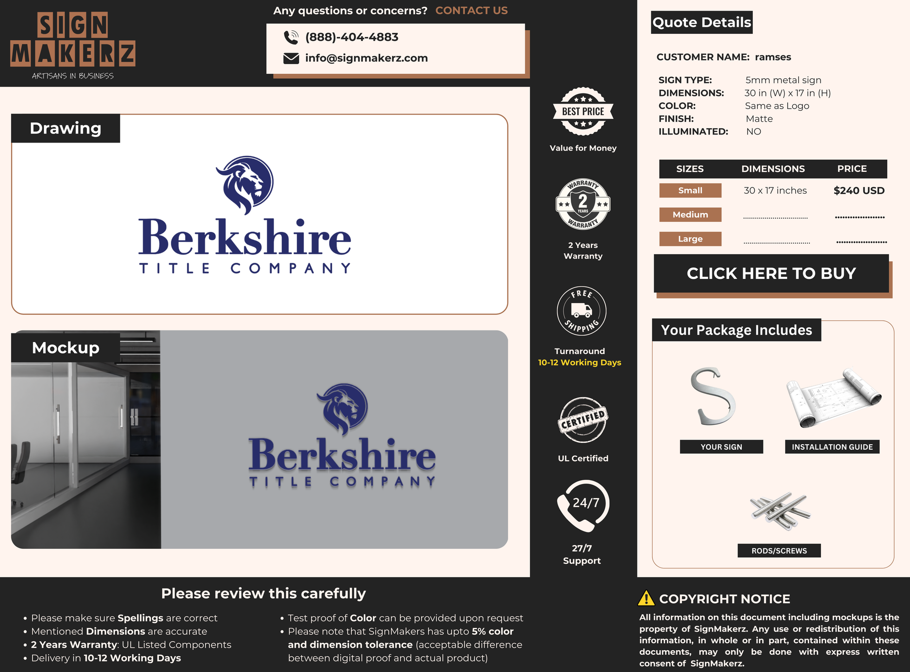 Crafted with premium material, this signage will elevate your business image, precisely mirroring your logo for a professional look.