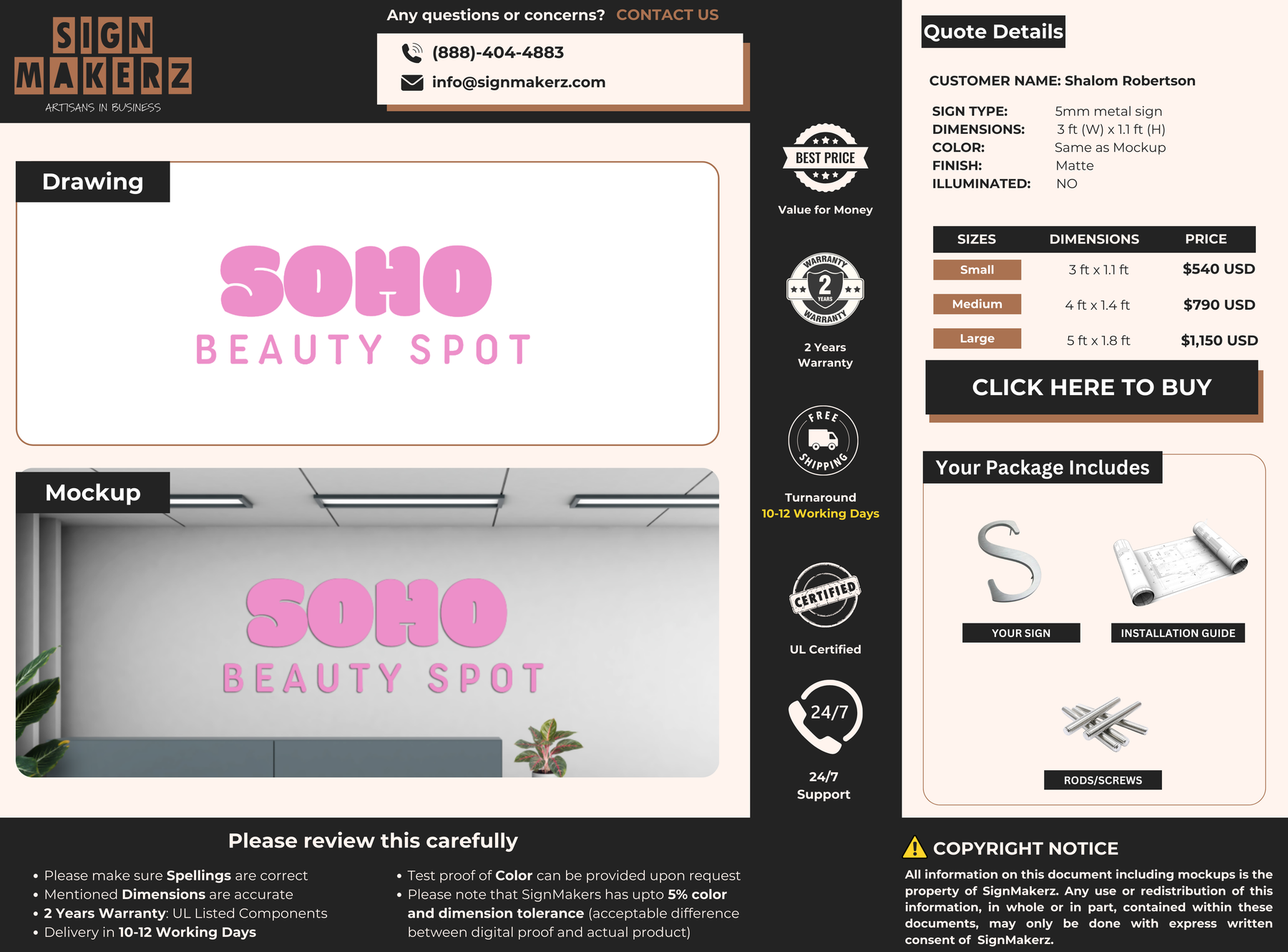 Crafted with premium material, this signage will elevate your business image, precisely mirroring your logo for a professional look.