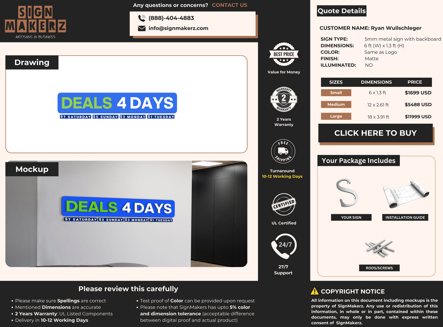 Enhance your business presence with our expertly crafted signage, made from top-quality material, to ensure longevity and durability. Fully customizable to reflect your unique brand identity, our signage offers a professional and polished appearance. Easy to install and low maintenance, it’s the perfect addition to any business setting. Trust us to deliver a product that not only meets but exceeds your expectations.