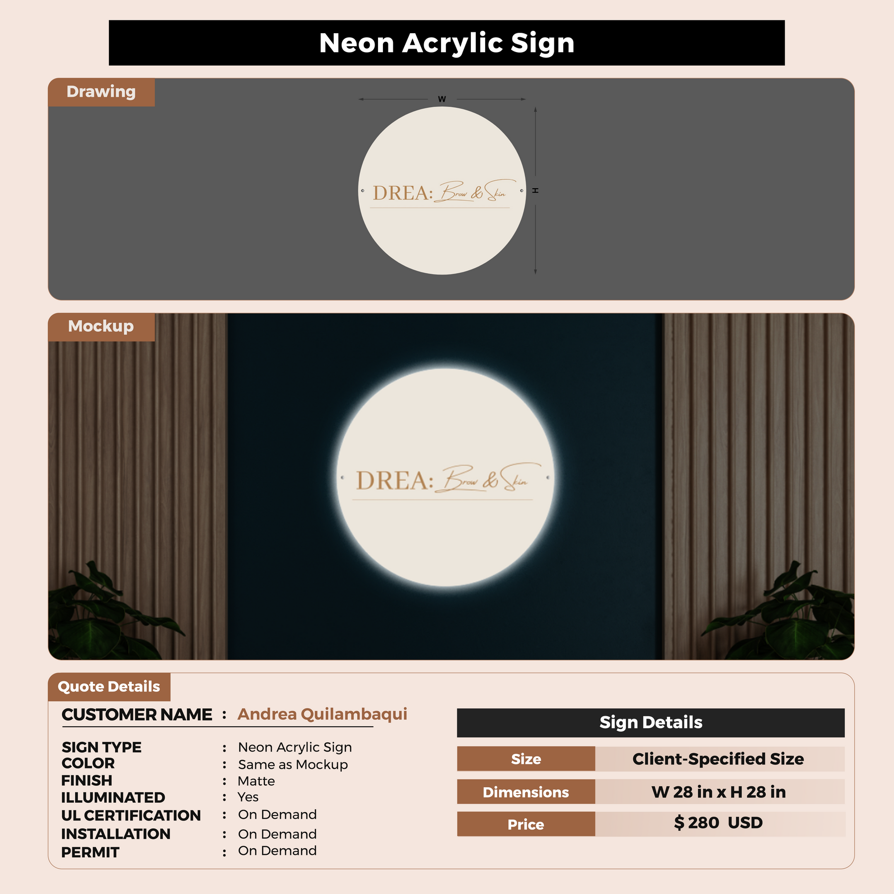Neon Acrylic Sign For Andrea Quilambaqui