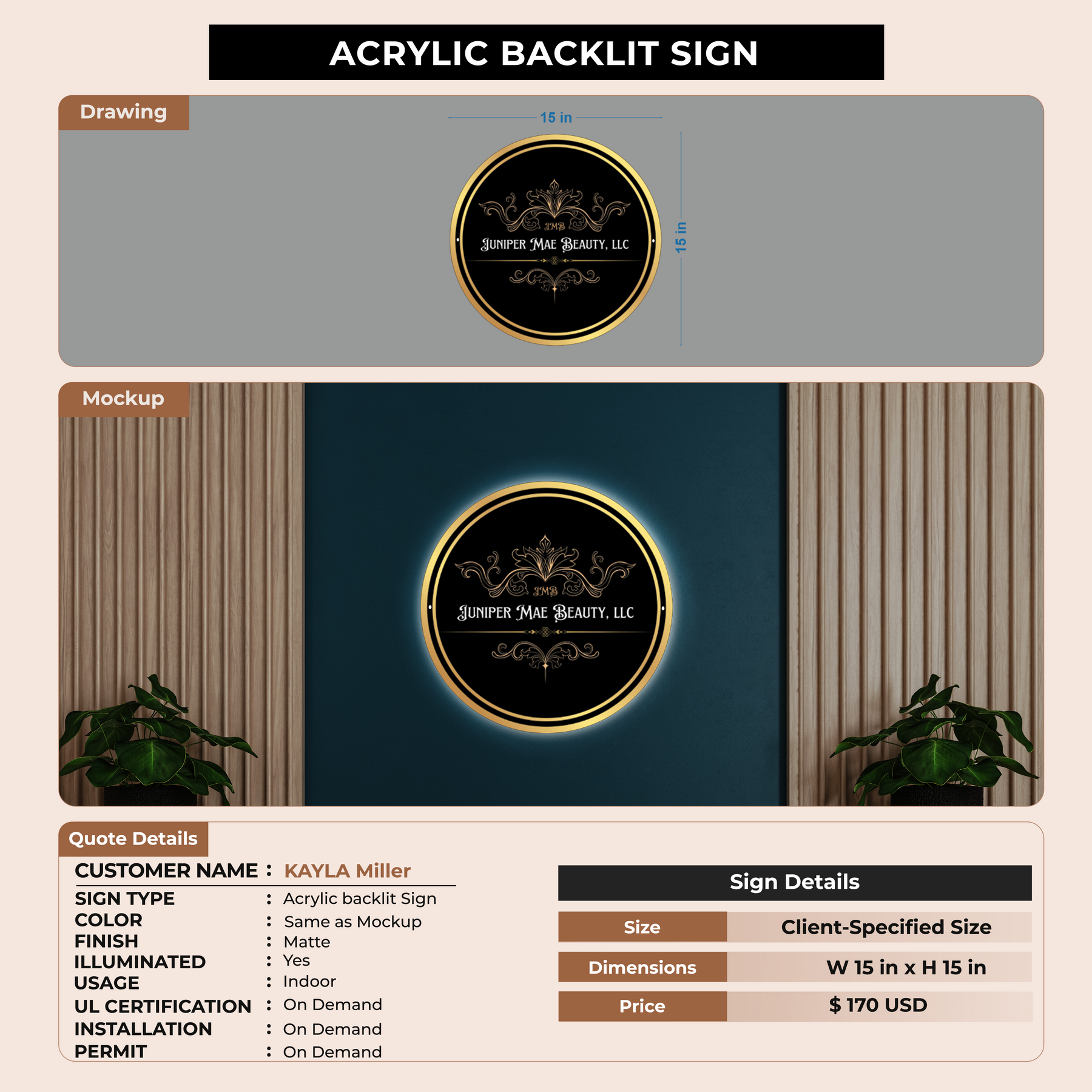 Acrylic Backlit Sign For KAYLA Miller