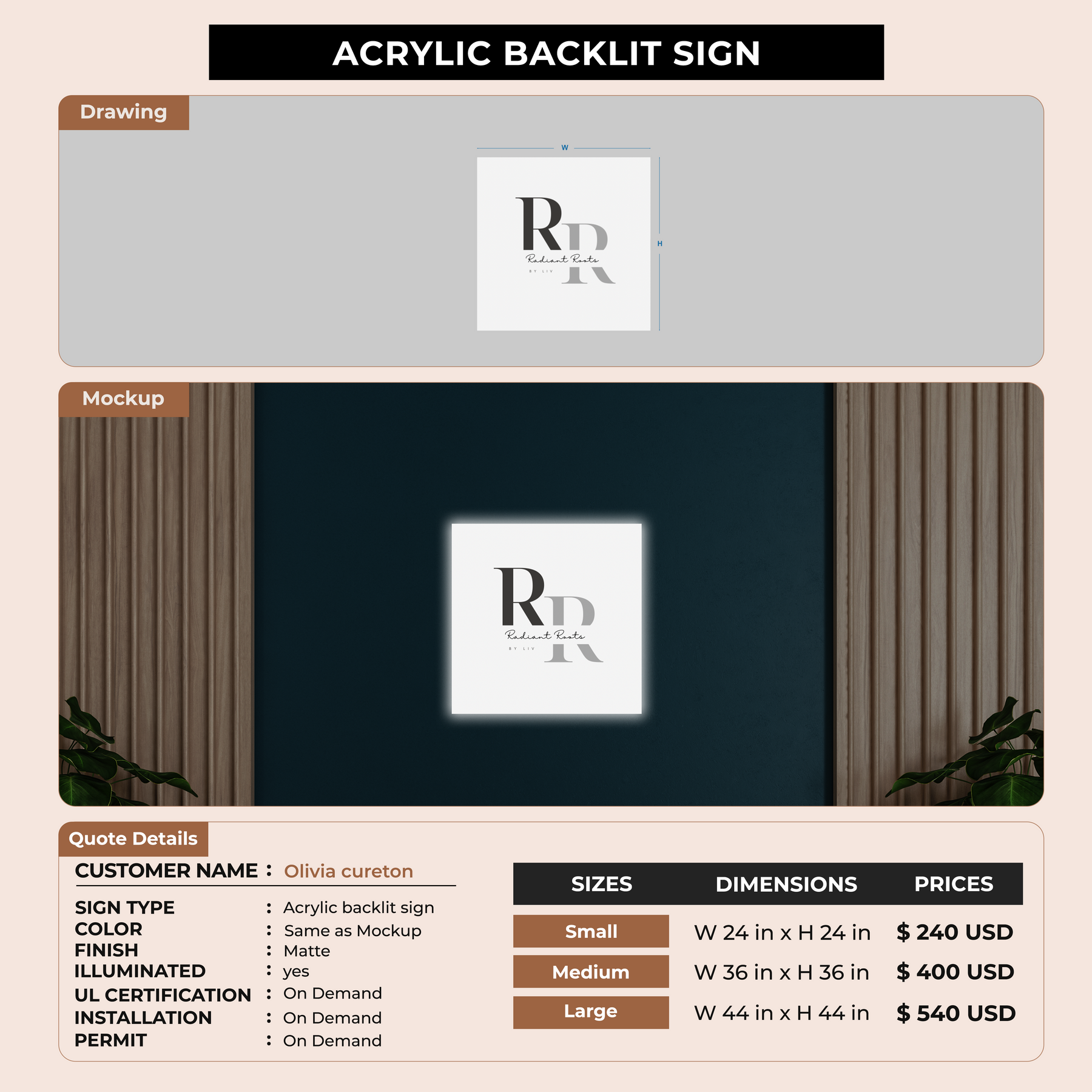 ACRYLIC BACKLIT SIGN For Olivia cureton