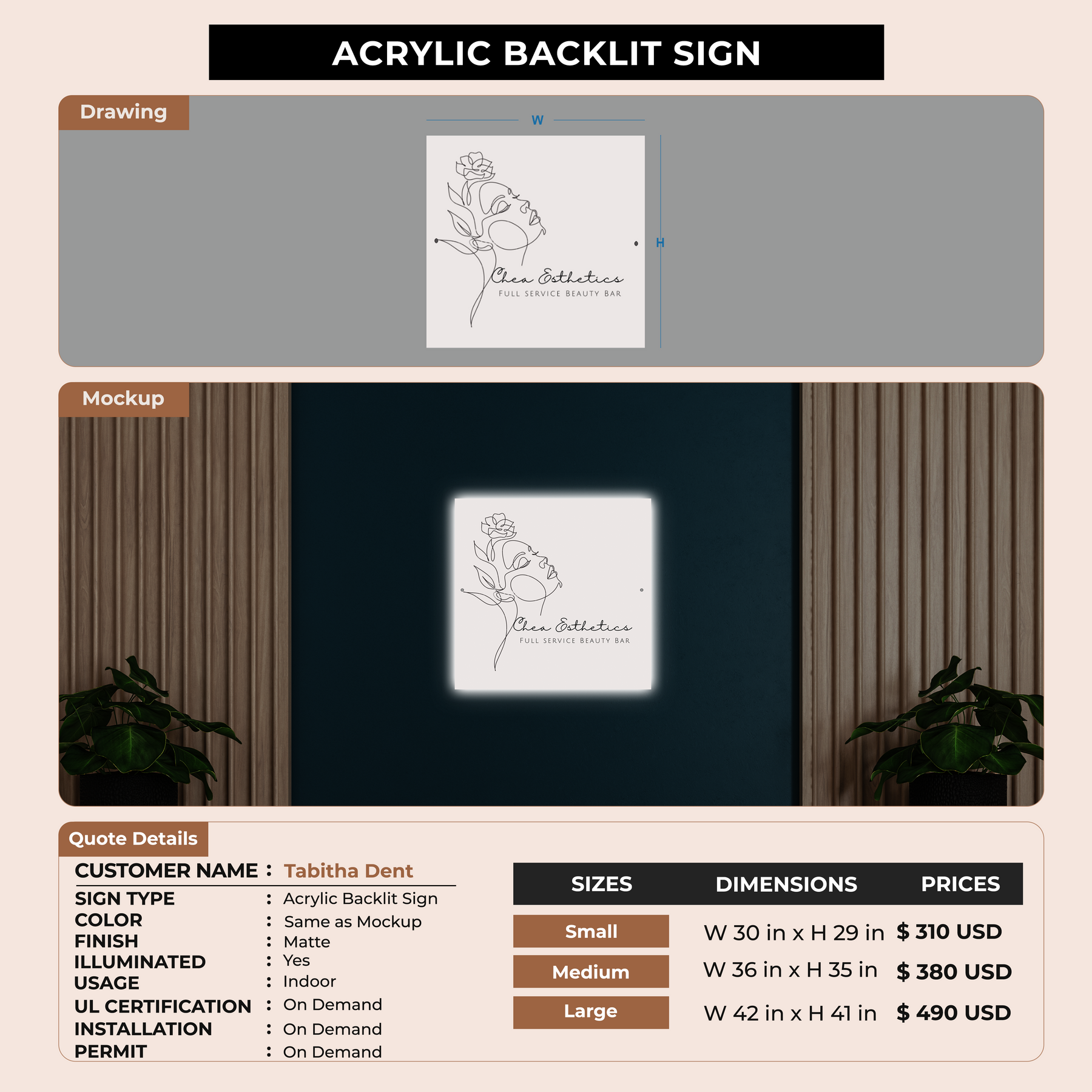 Acrylic Backlit Sign For Tabitha Dent