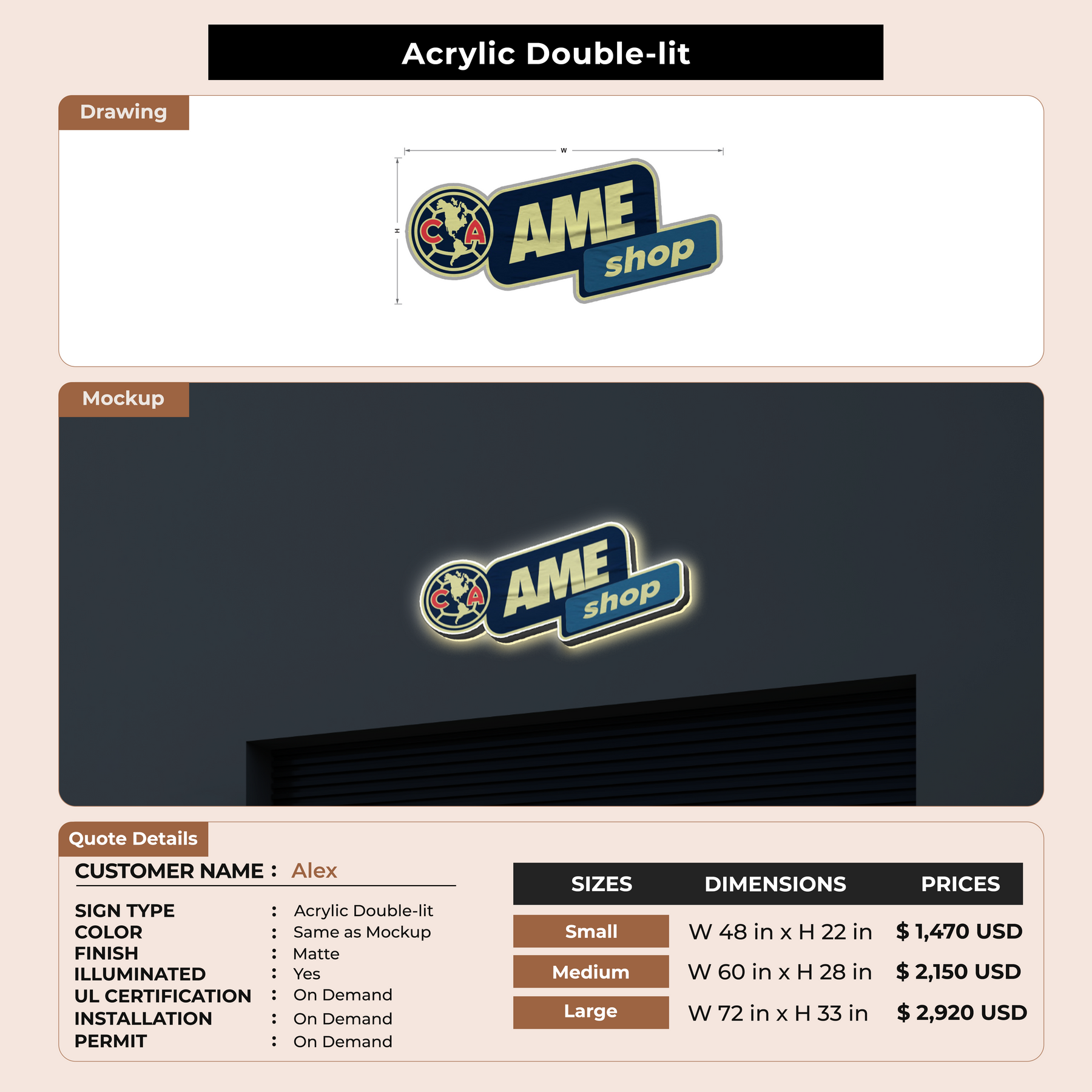 Acrylic Double-lit Sign for Alex