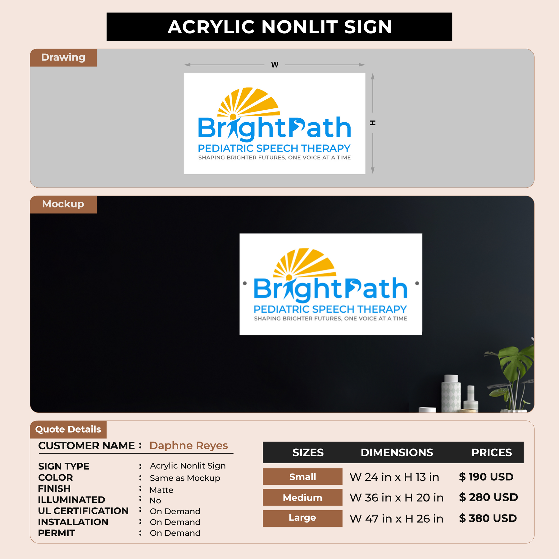 Acrylic Non-lit Sign for Daphne Reyes