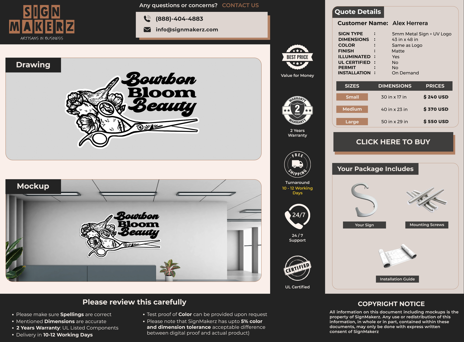 Crafted with premium material, this signage will elevate your business image, precisely mirroring your logo for a professional look.