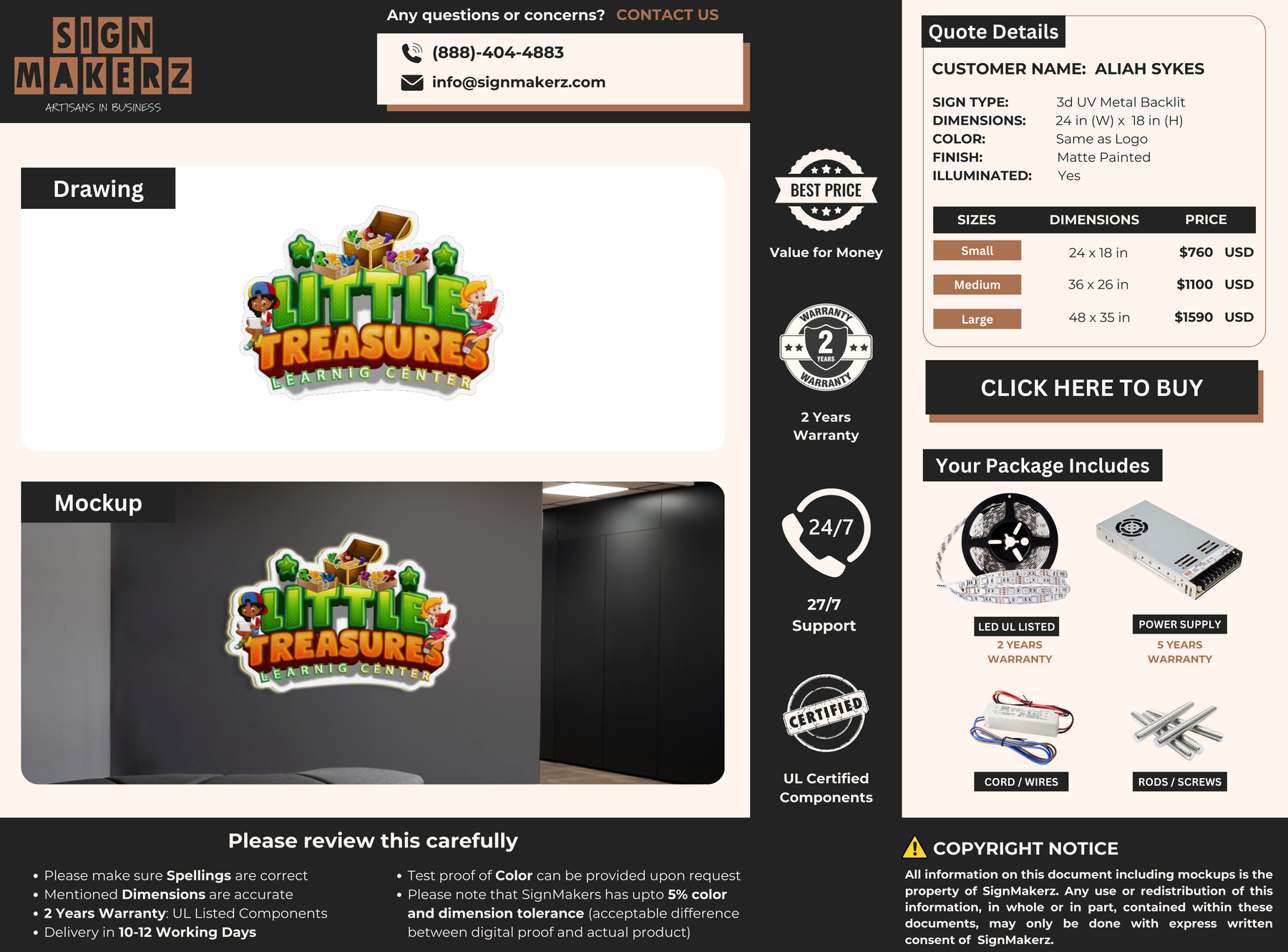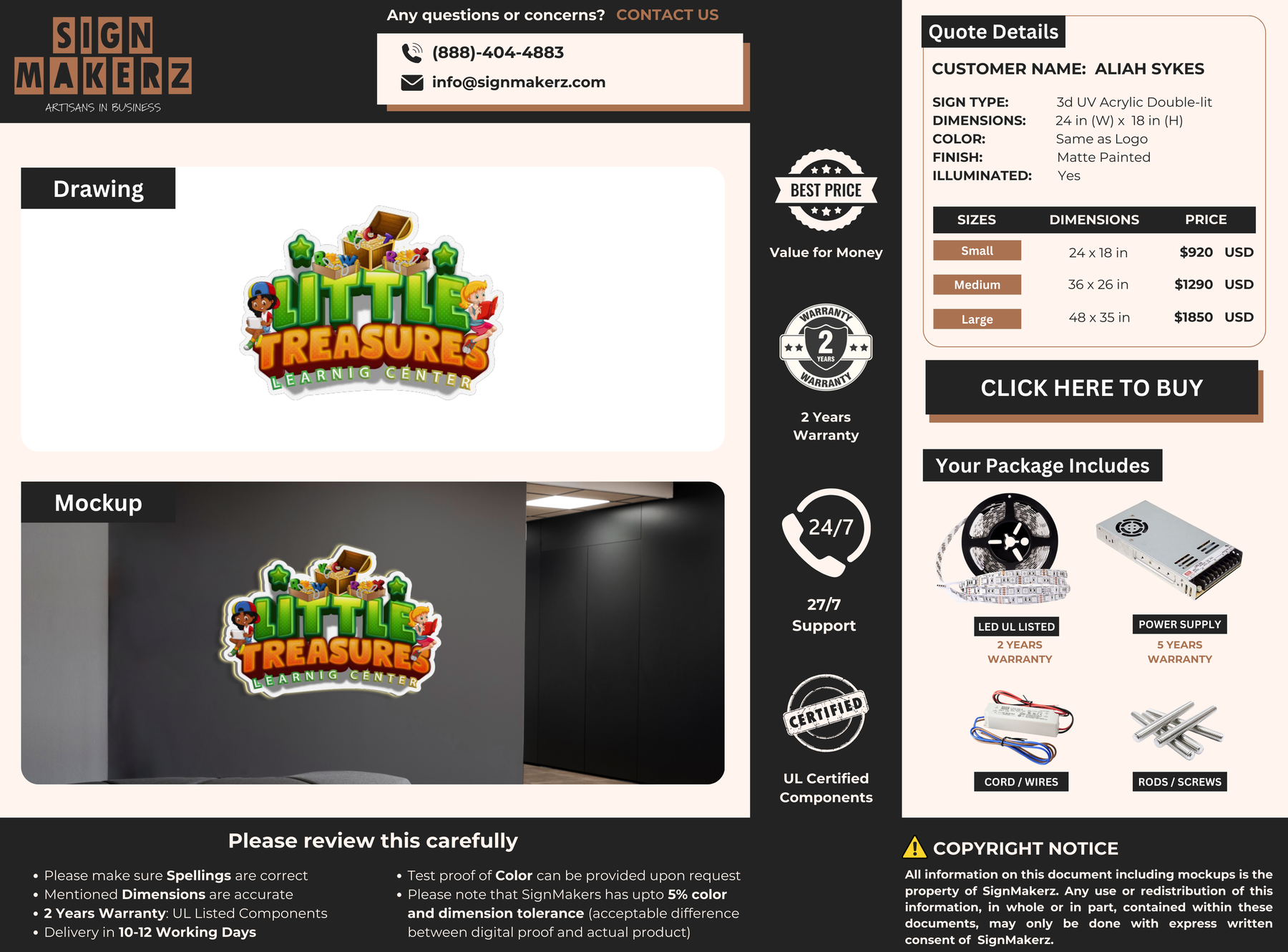 Crafted with premium material, this signage will elevate your business image, precisely mirroring your logo for a professional look.