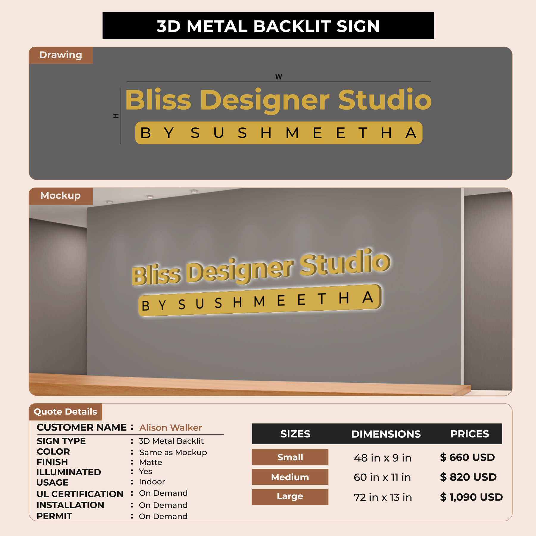 Crafted with premium material, this signage will elevate your business image, precisely mirroring your logo for a professional look.