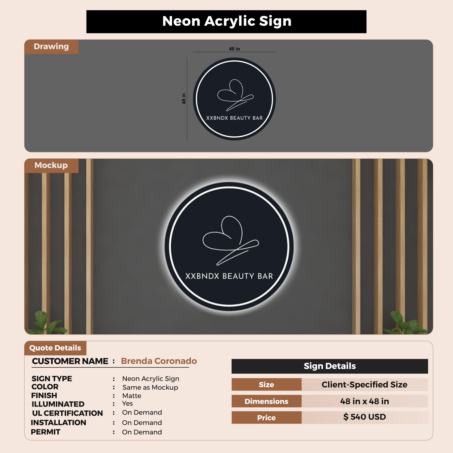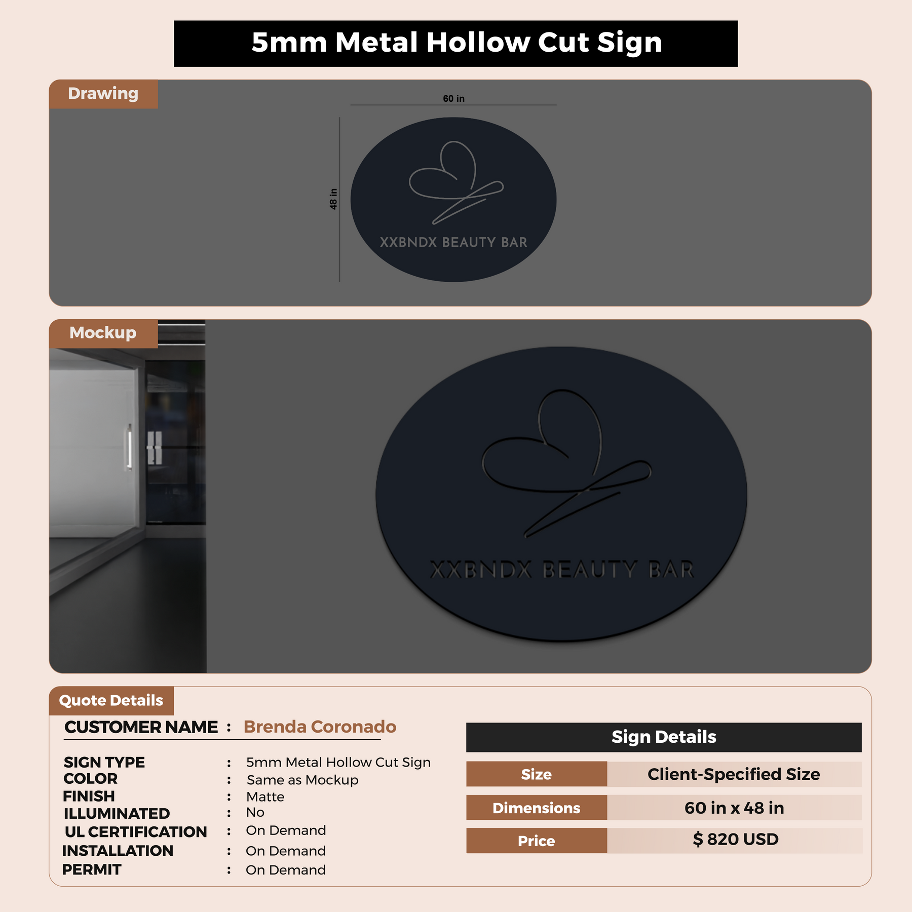 Crafted with premium material, this signage will elevate your business image, precisely mirroring your logo for a professional look.