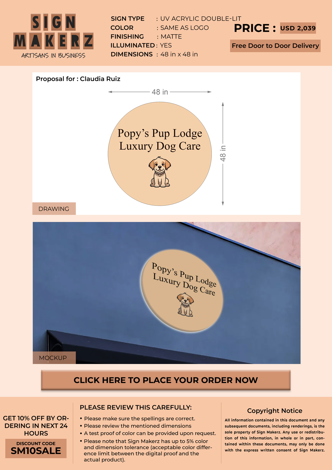 Crafted with premium material, this signage will elevate your business image, precisely mirroring your logo for a professional look.