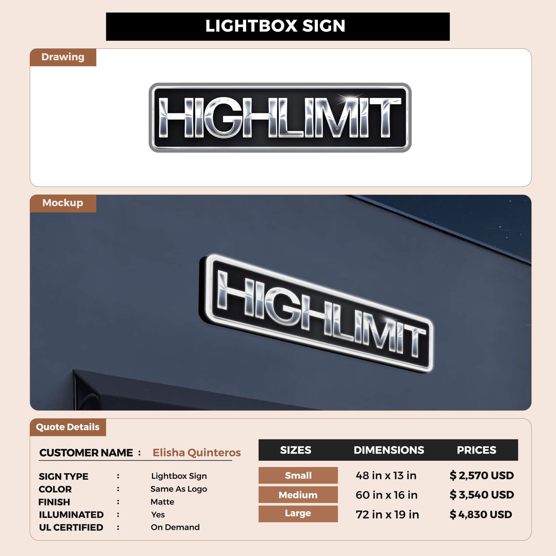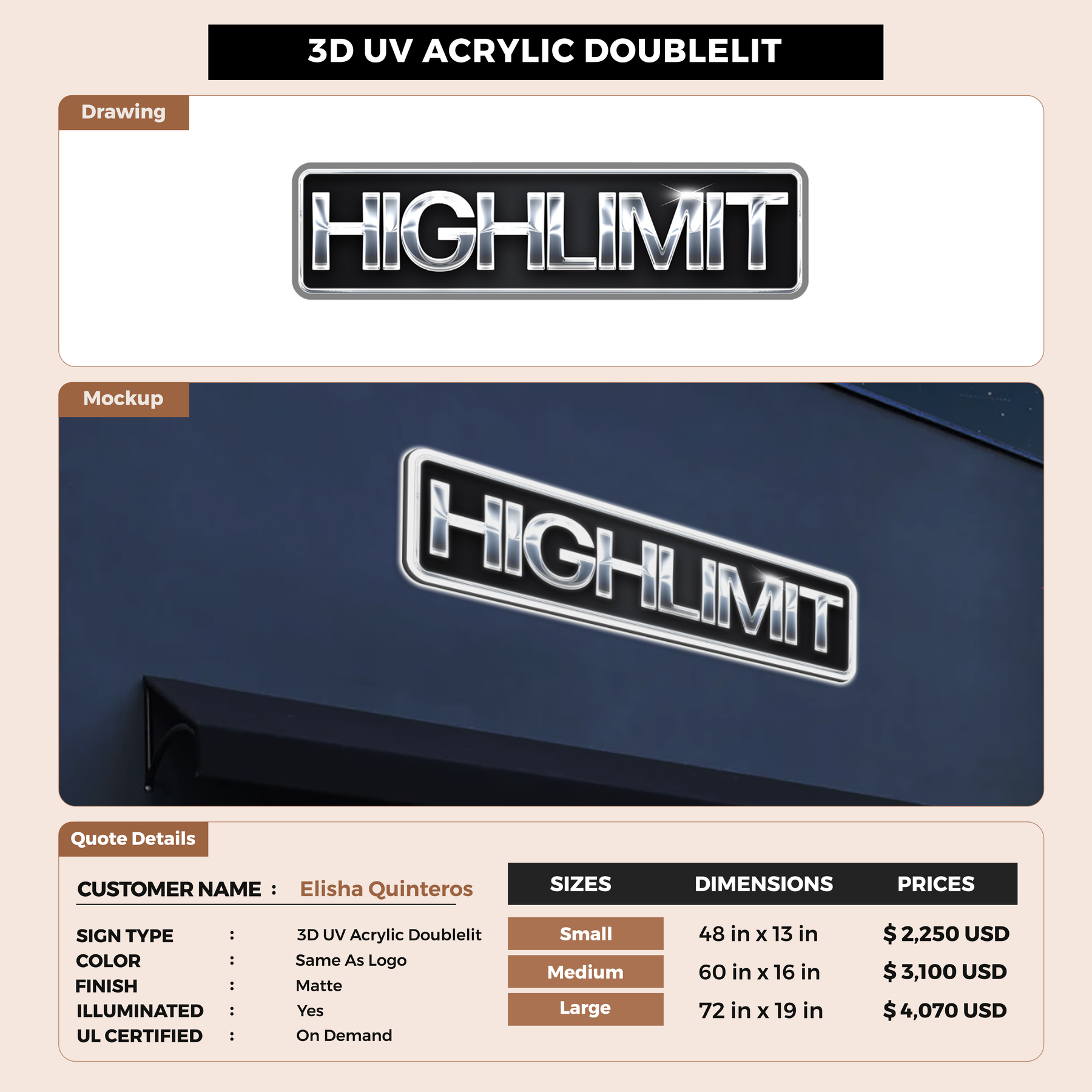 Business signage for Elisha Quinteros
