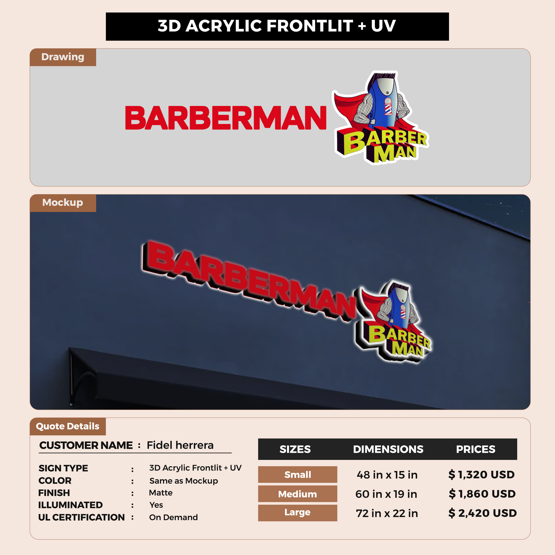 Crafted with premium material, this signage will elevate your business image, precisely mirroring your logo for a professional look.