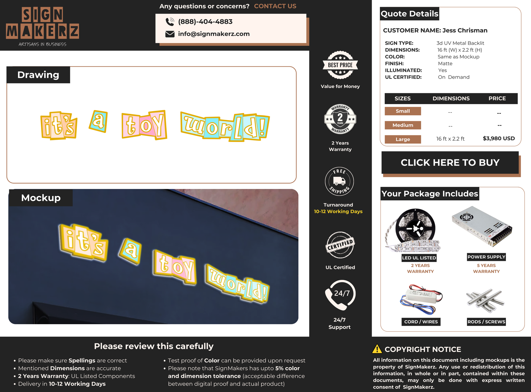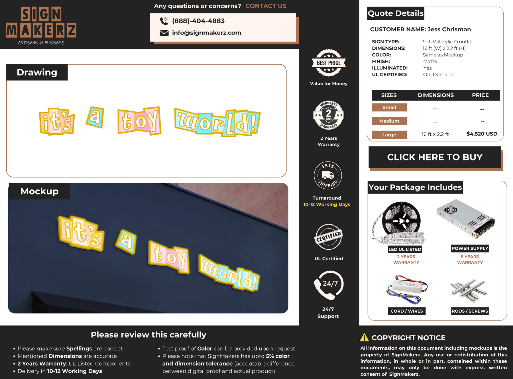 Crafted with premium material, this signage will elevate your business image, precisely mirroring your logo for a professional look.