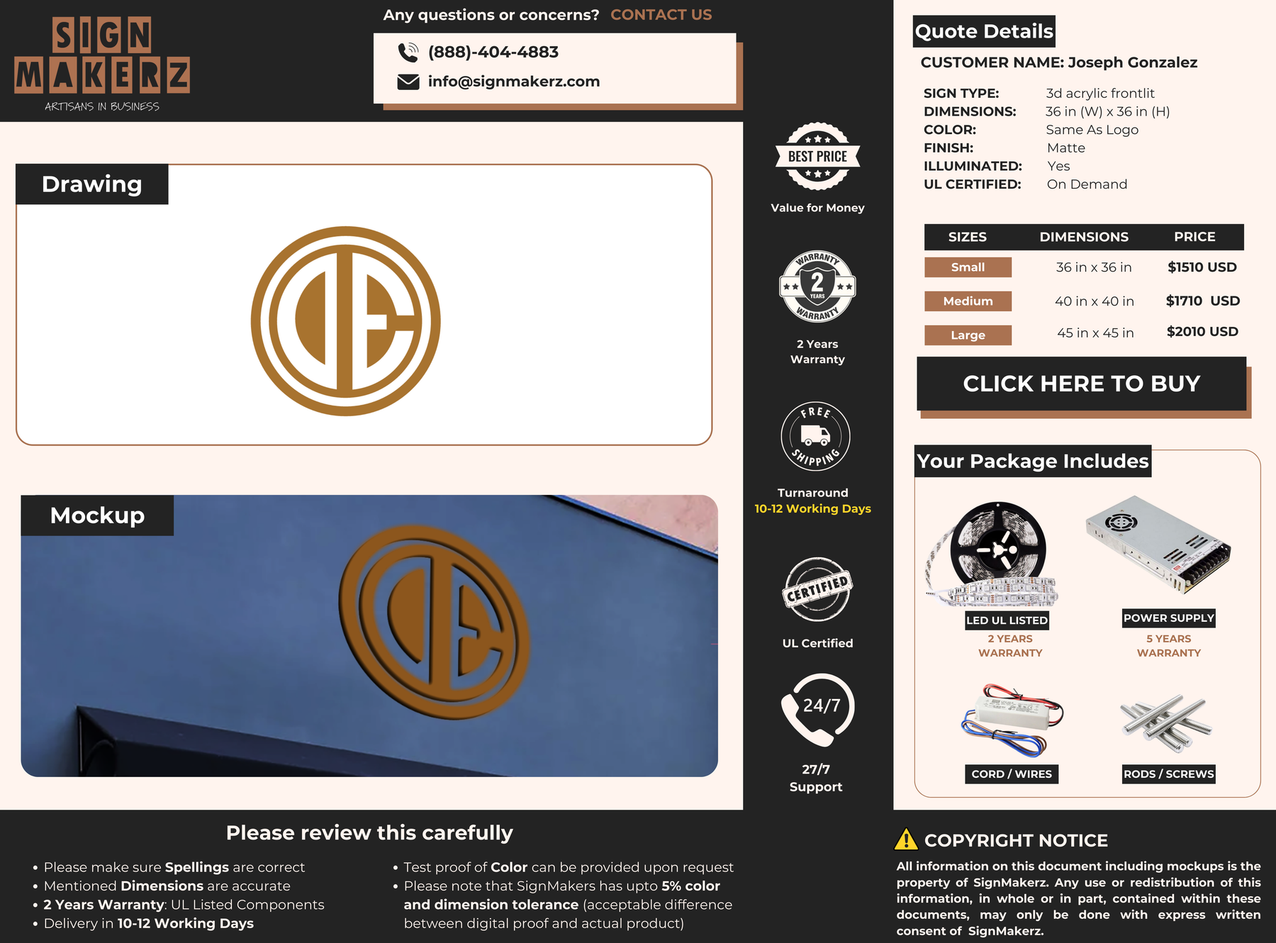 Crafted with premium material, this signage will elevate your business image, precisely mirroring your logo for a professional look.