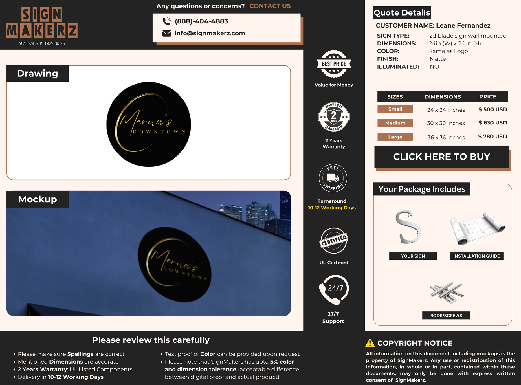 Crafted with premium material, this signage will elevate your business image, precisely mirroring your logo for a professional look.